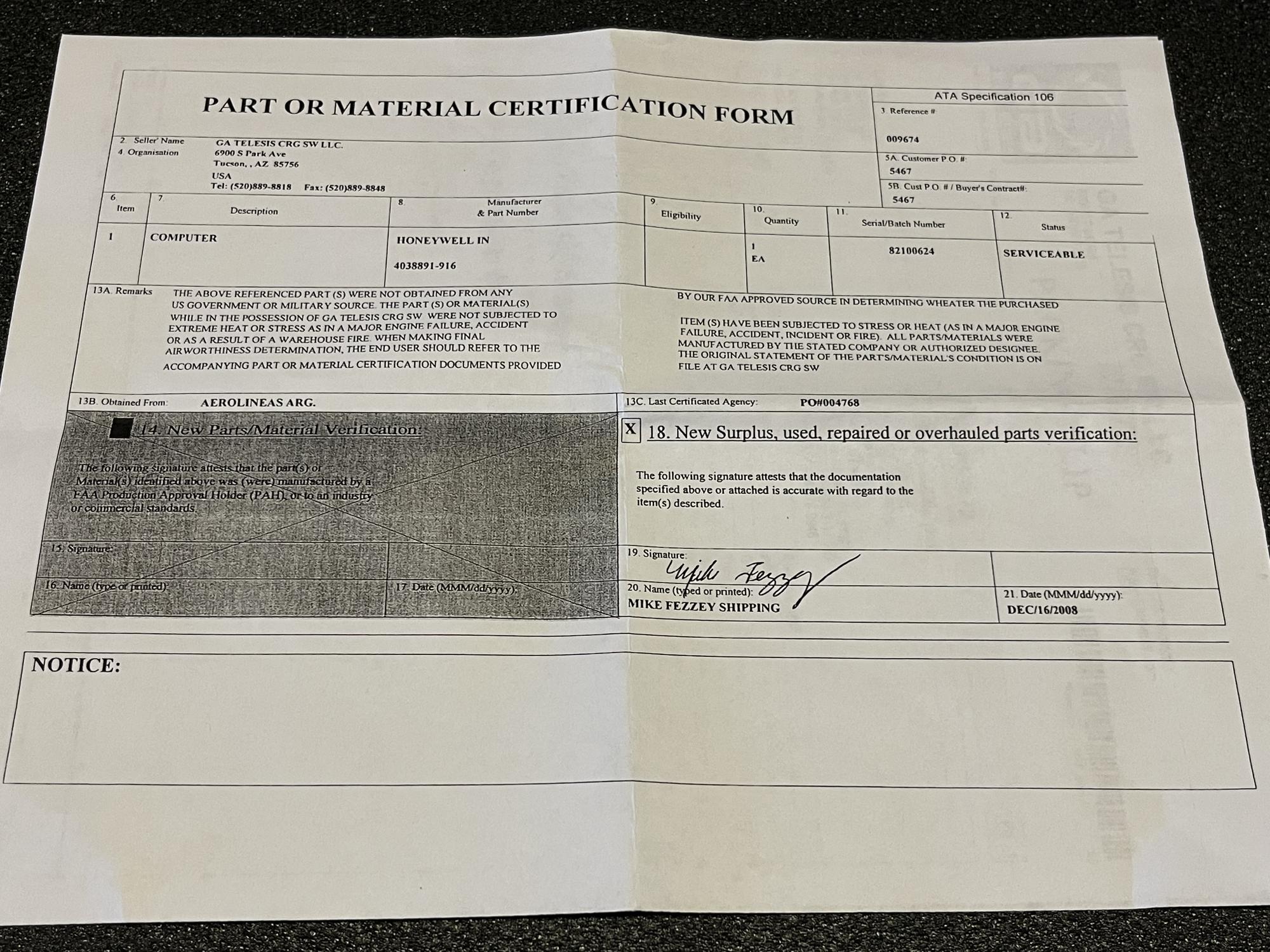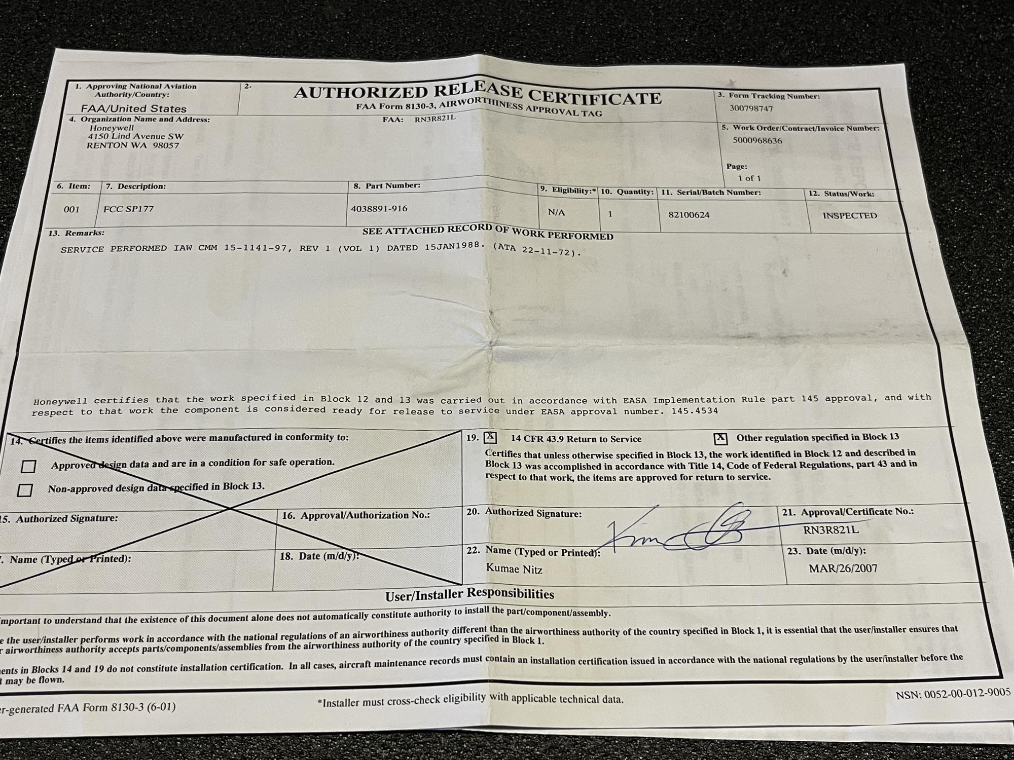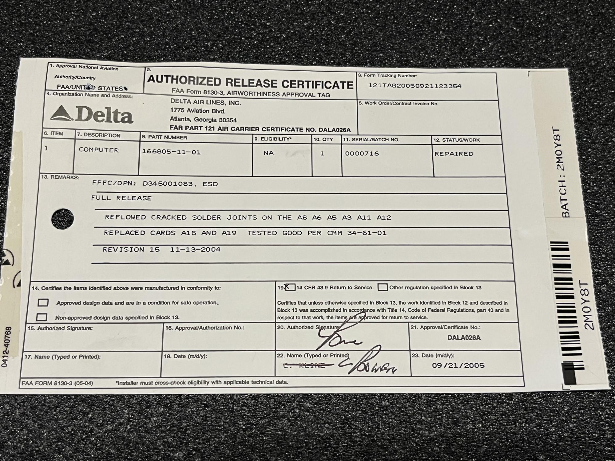 | 105 | 166805-11-01 | 0000716 | COMPUTER | 1 | SV | B737 | CDLT1-ROTB | SID01347 | View |