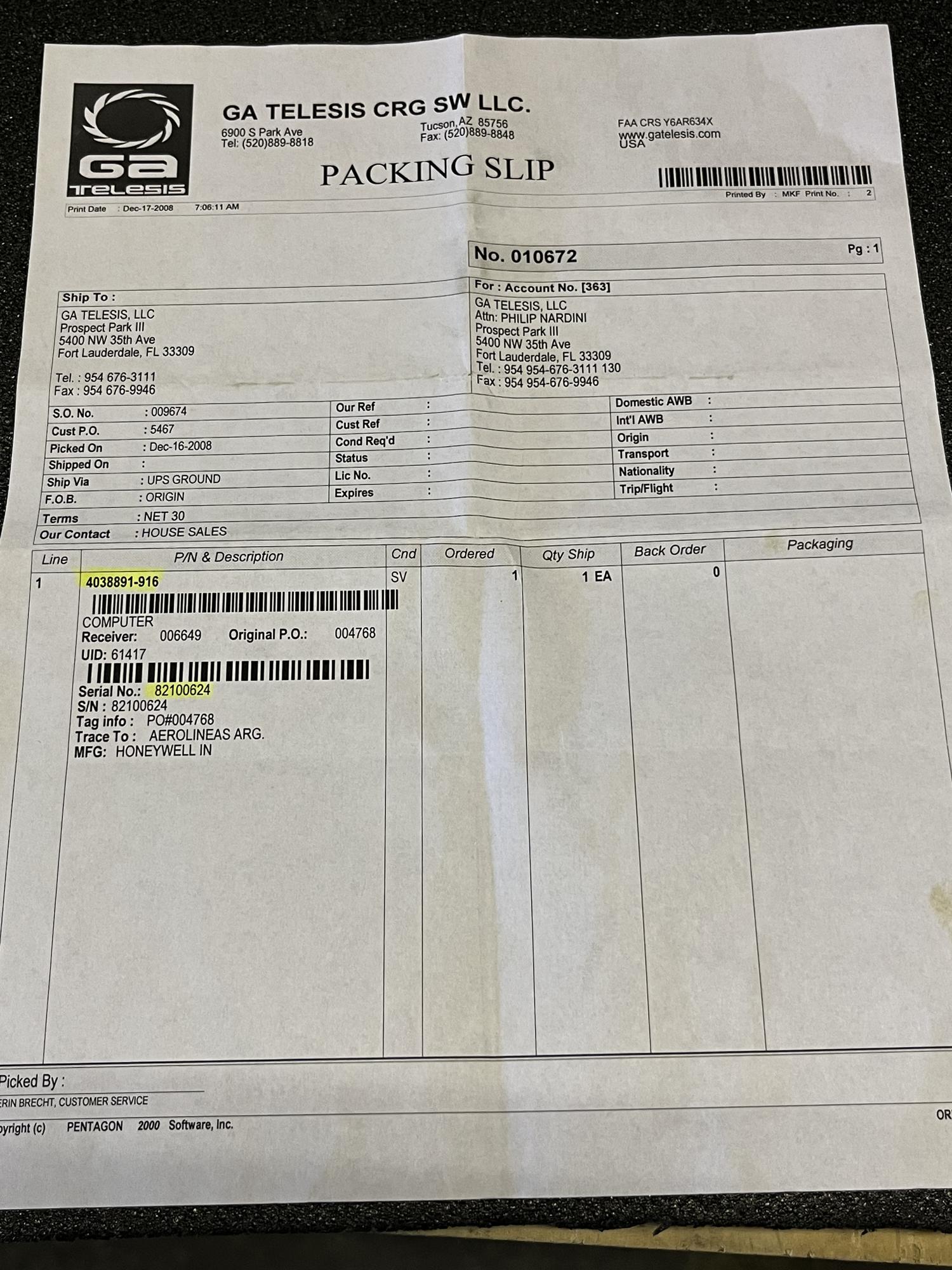 | 105 | 4038891-916 | 82100624 | COMPUTER | 1 | SV | CRJ | ASG2009 | SID09120 | View |