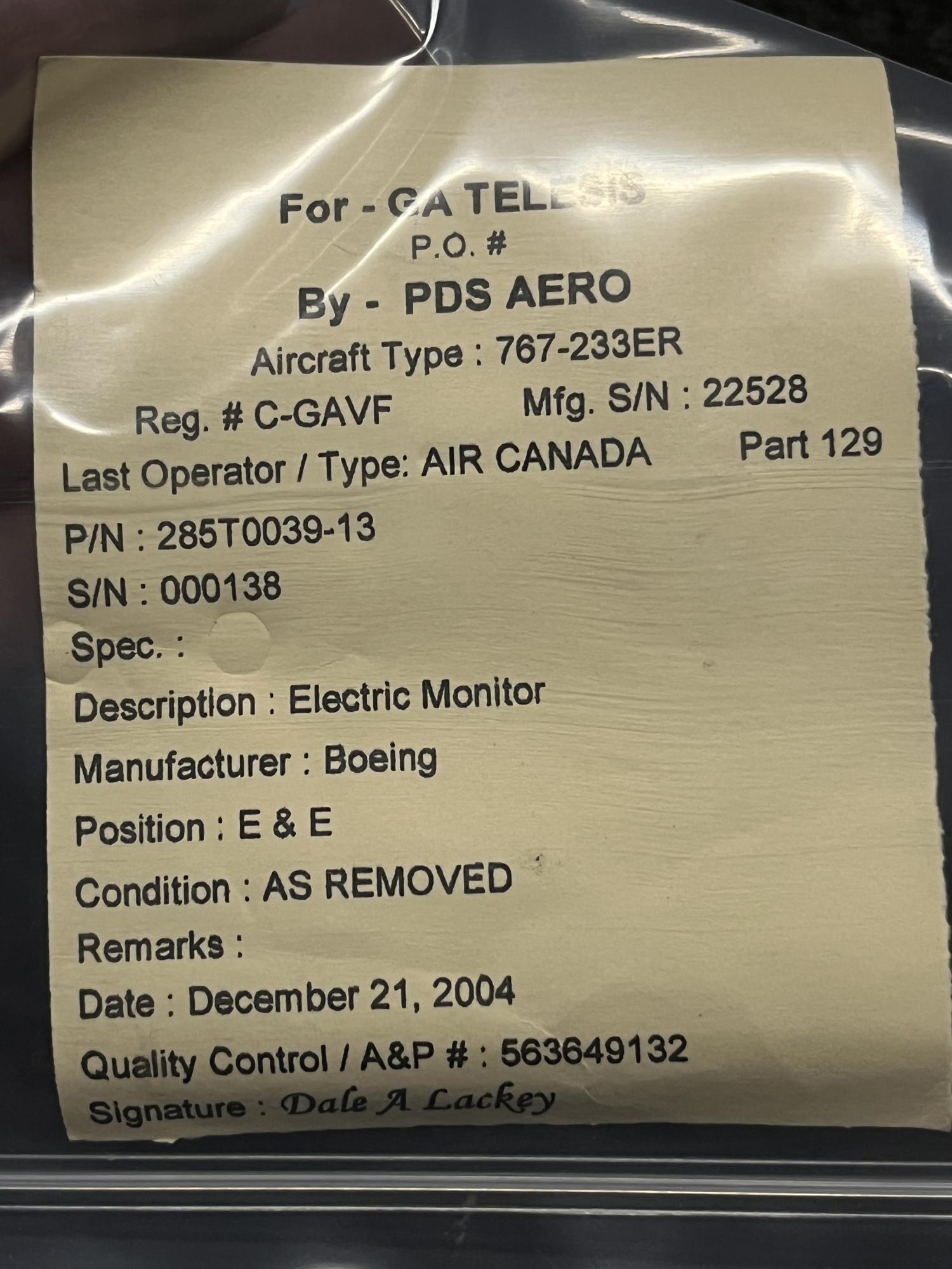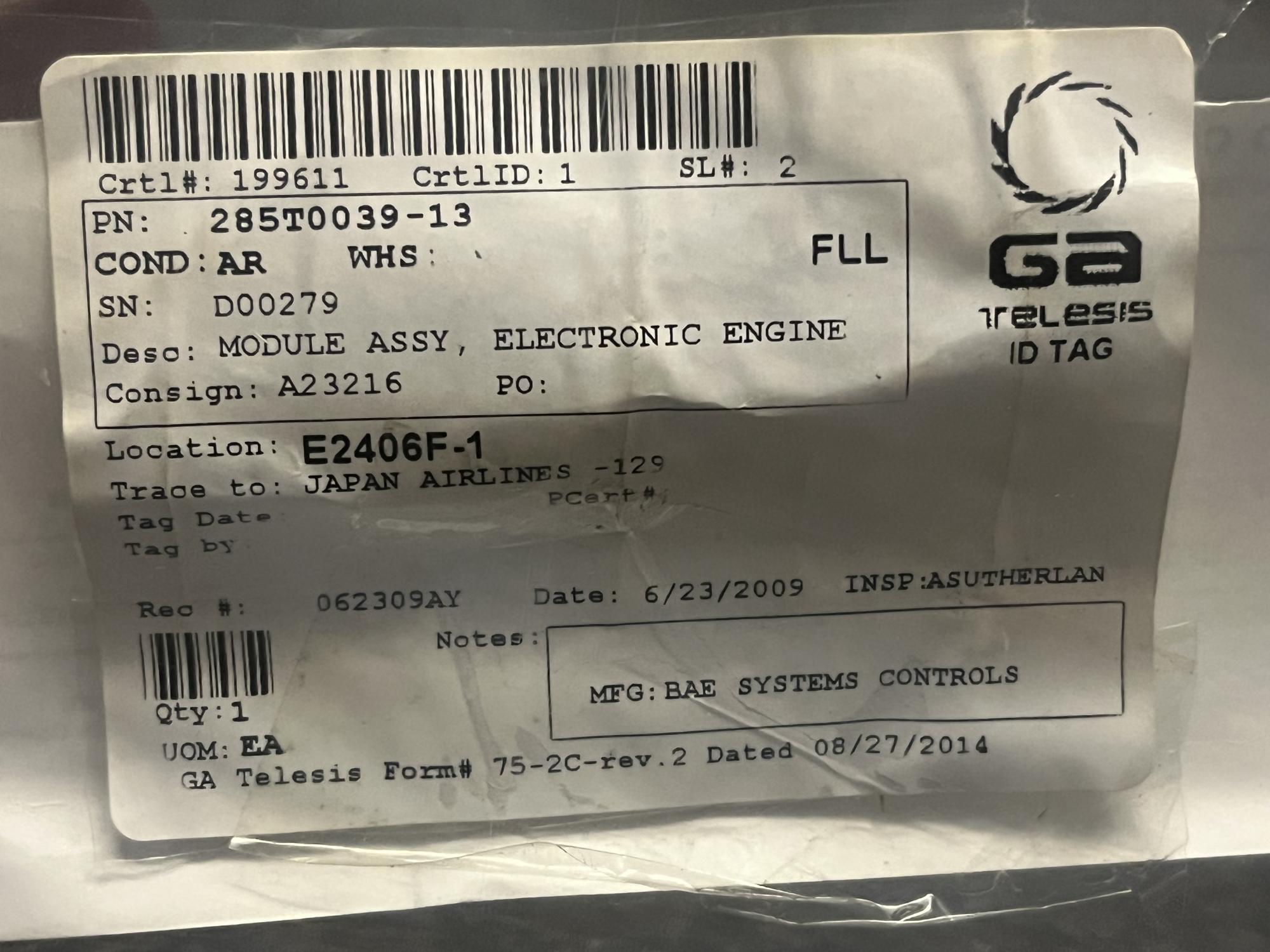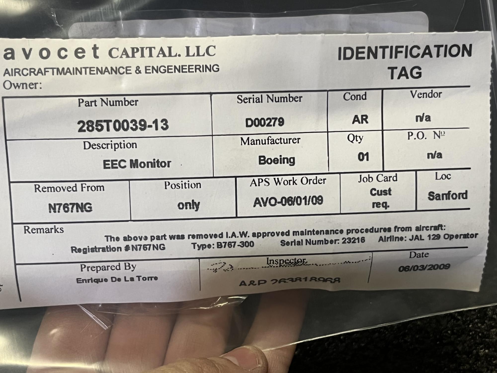 | 151 | 285T0039-13 | D00279 | MODULE ASSY, ELECTRONIC ENGINE CTRL, EEC, V89954 | 1 | AR | B767 | A23216 | SID03992 | View |