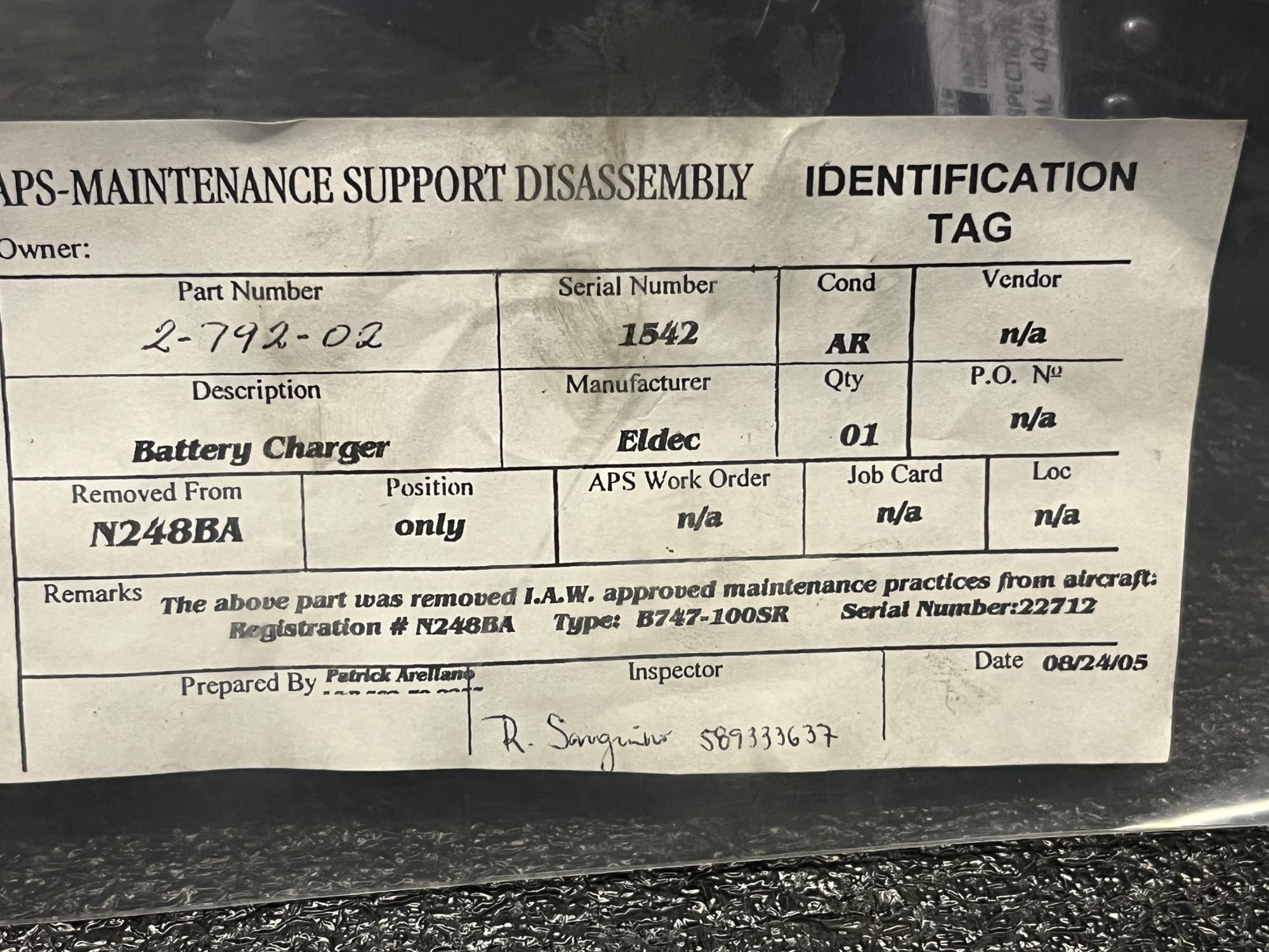 | 151 | 2-792-02 | 1542 | CHARGER ASSY, BATTERY, MAIN, V08748 | 1 | AR | B747 | A22712 | SID03828 | View |