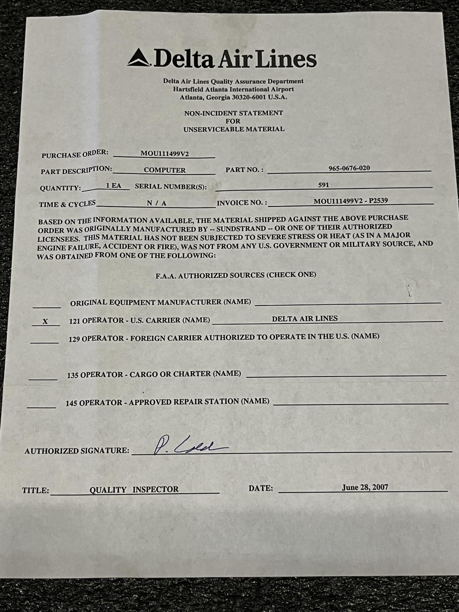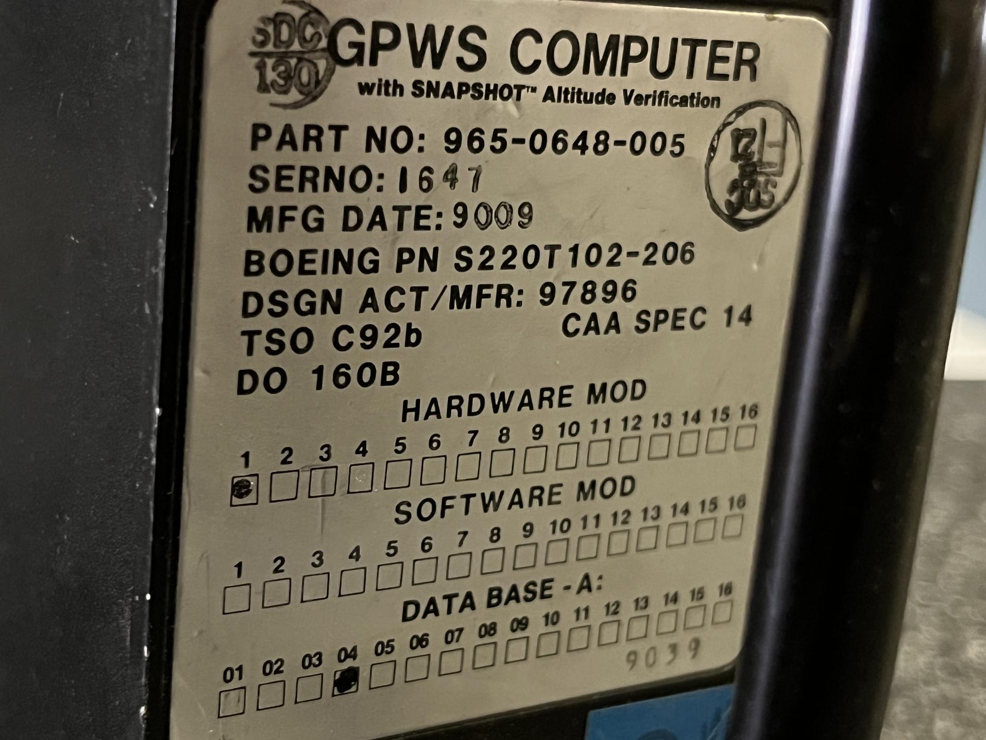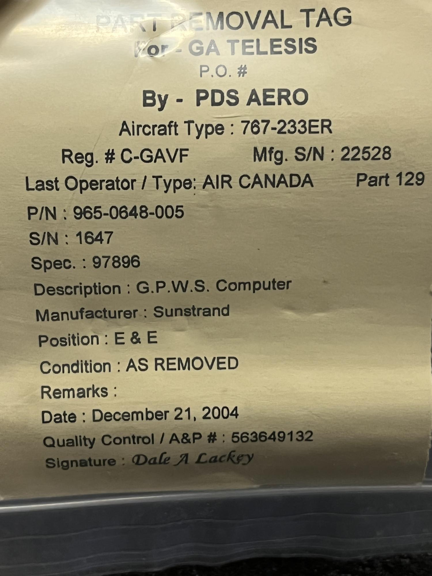 | 151 | 965-0648-005 | 1647 | COMPUTER UNIT, ENHCD GRD PR0X/WARN, EGPWS, V97896 | 1 | AR | B767 | A22528 | SID17396 | View |