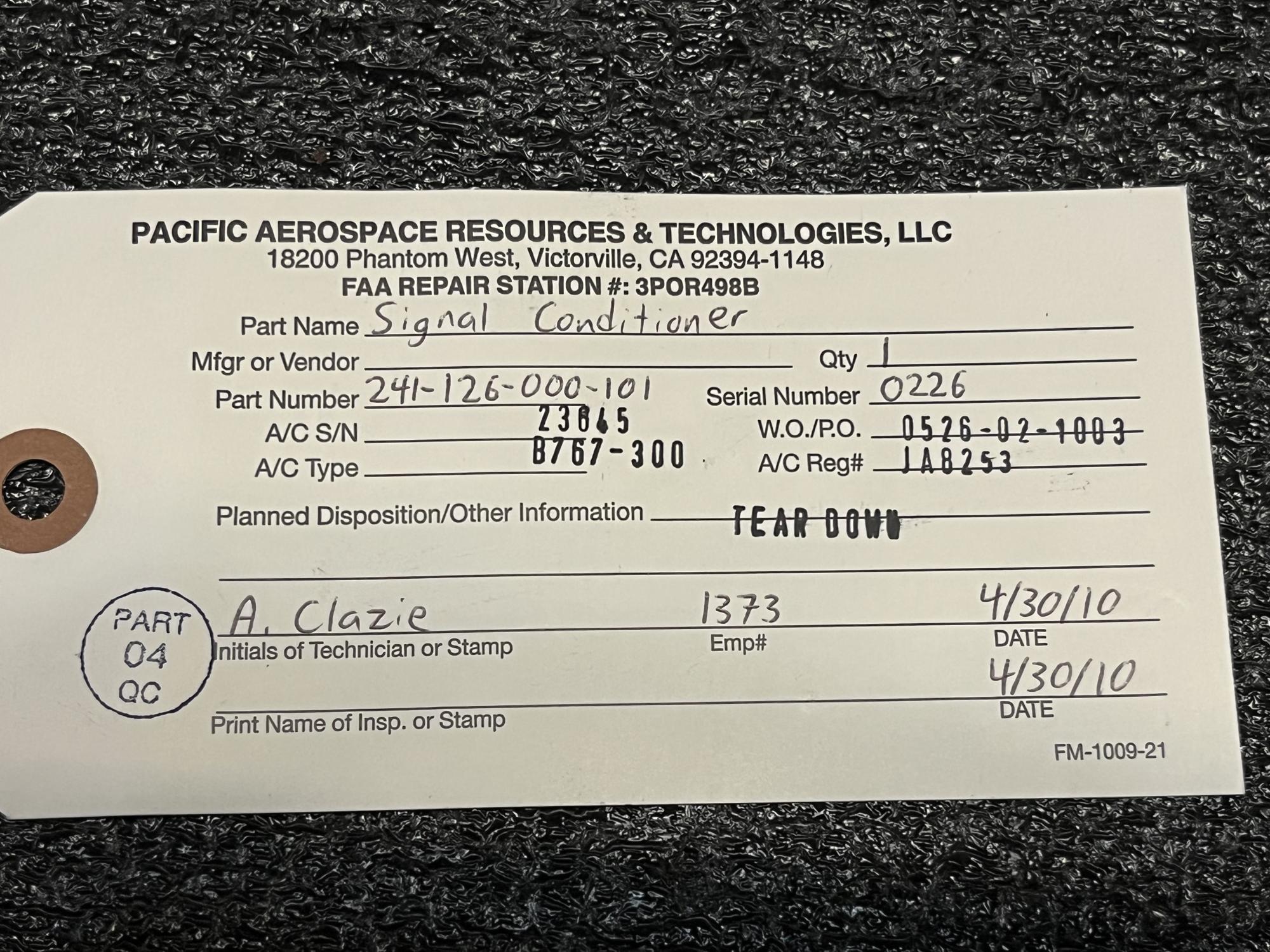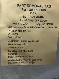 | 151 | 241-126-000-101 | 0226 | UNIT ASSY, ENG VIBRATN SIGNAL CONDITIONER, VS3960 | 1 | AR | B767 | A23645 | SID03239 | View |