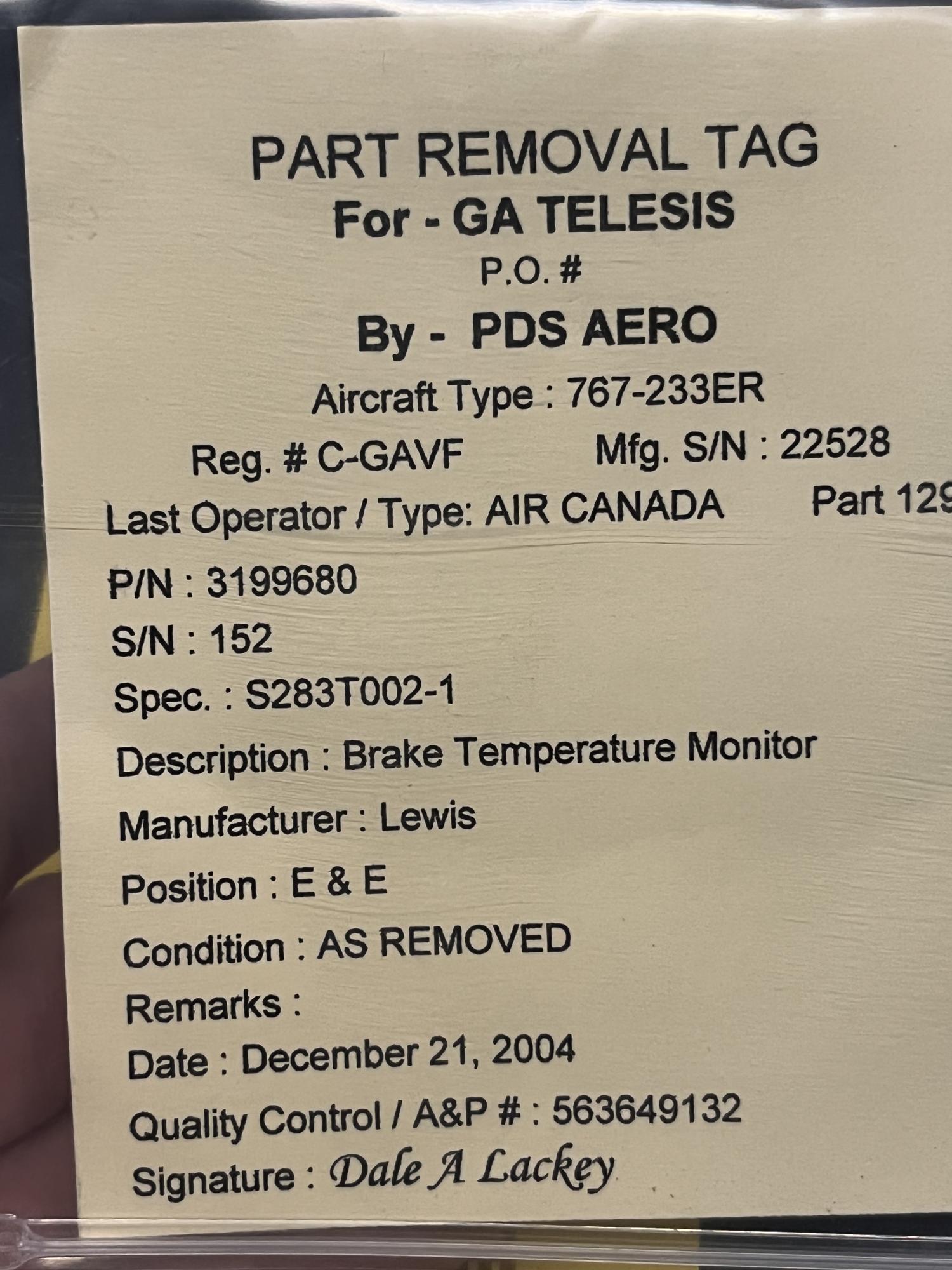 | 151 | 3199680 | 152 | BRAKE PUMP MONITOR | 1 | AR | B767 | A22528 | SID04911 | View |