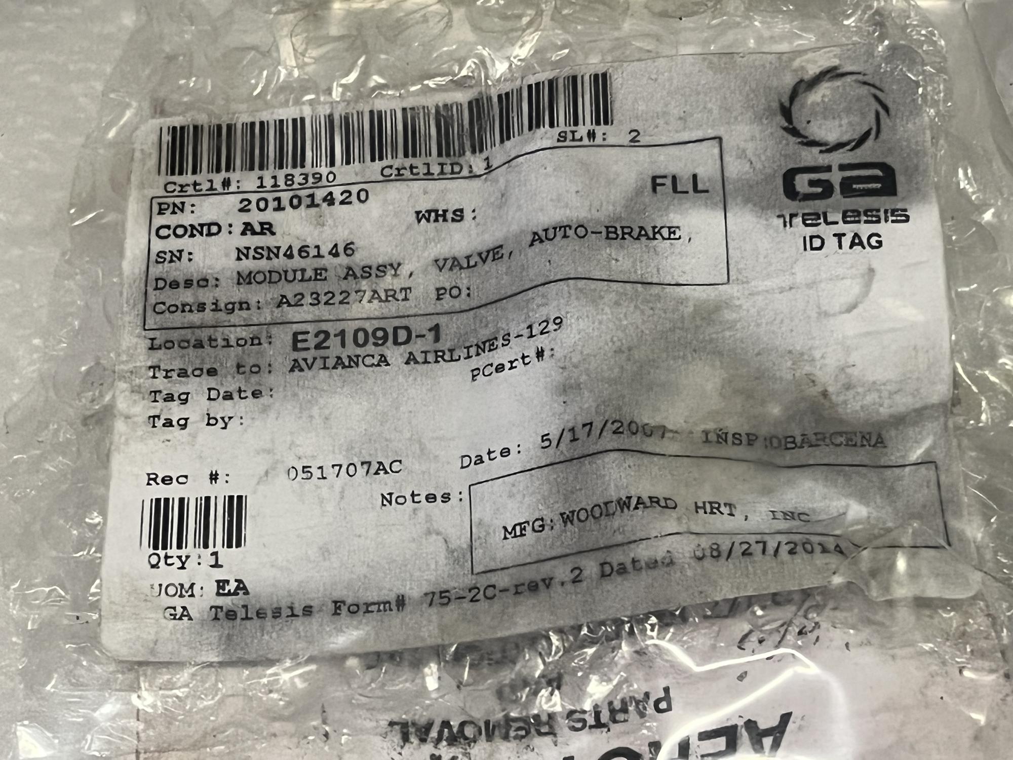 247 | 20101420 | NSN46146 | MODULE ASSY, VALVE, AUTO-BRAKE, MLG W/W, V81873 | 1 | AR | B757 | A23227ART | SID01618 | View |