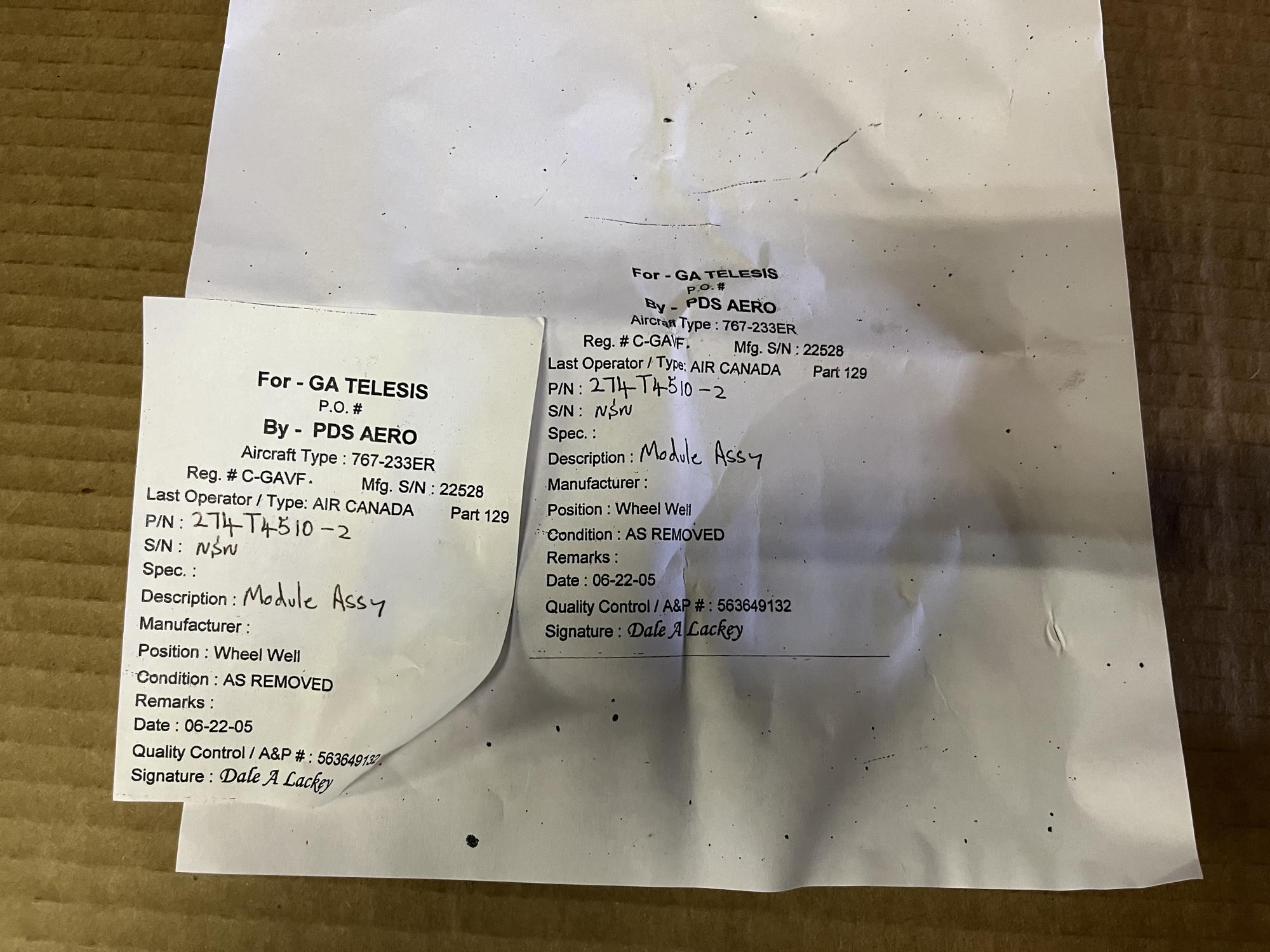247 | 274T4510-2 | NSN32581 | MODULE ASSY. | 1 | AR | B767 | A22528 | SID03810 | View |