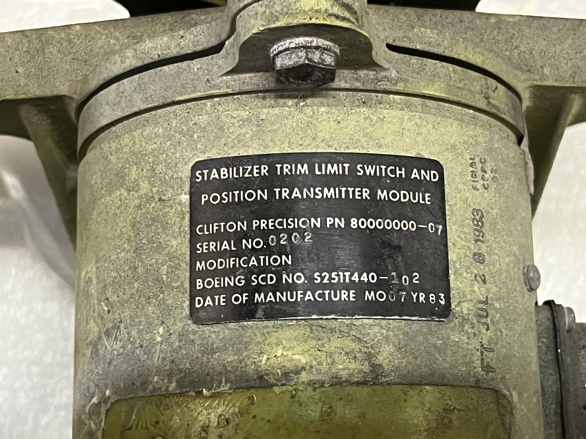 248 | 80000000-07 | 0256 | MODULE ASSY, STABILIZER TRIM LIMIT, POS TX, V86197 | 1 | AR | B757 | A23200 | SID15214 | View |