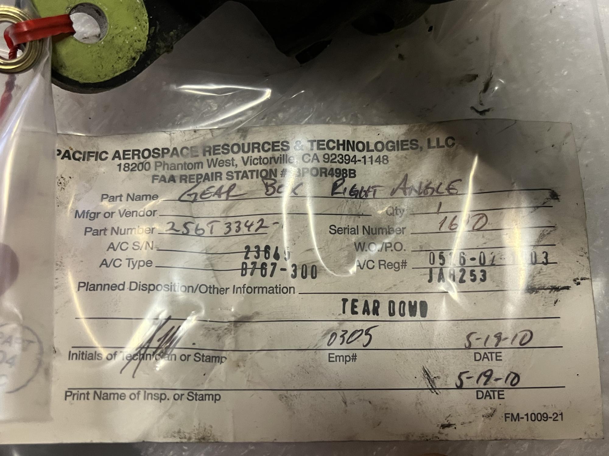 248 | 256T3430-4 | 0175 | GEARBOX ASSY, TE FLAP DRIVE, R/H, V81205 | 1 | AR | B767 | A23216 | SID03448 | View |