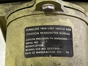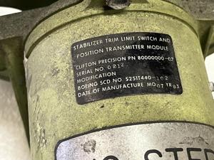 248 | 80000000-10 | 0503 | MODULE ASSY, STABILIZER TRIM LIMIT, POS TX, V1K426 | 1 | AR | B767 | A23217 | SID15215 | View |