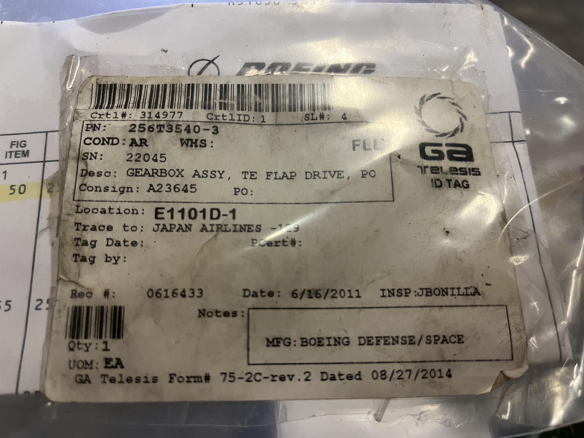 249 | 256T3540-3 | 22045 | GEARBOX ASSY, TE FLAP DRIVE, POS 3/6, L/H, V81205 | 1 | AR | B767 | A23645 | SID03452 | View |