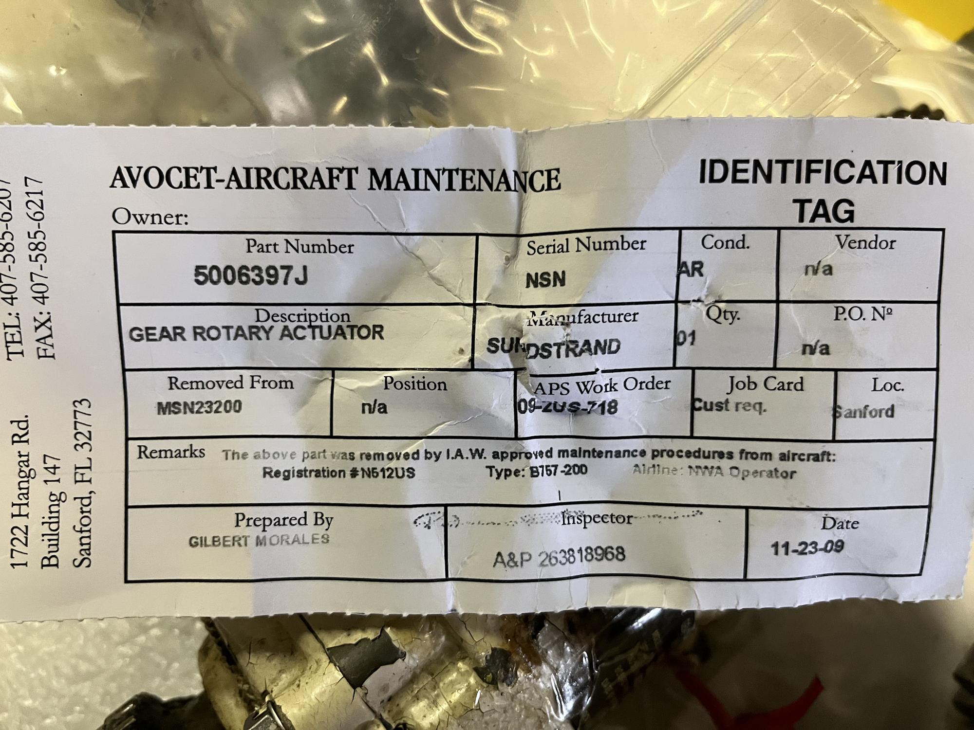 249 | 5006397J | 1582 | ACTUATOR ASSY, ROTARY LE SLAT DRIVE, V99167 | 1 | AR | B757 | A23200 | SID10229 | View |