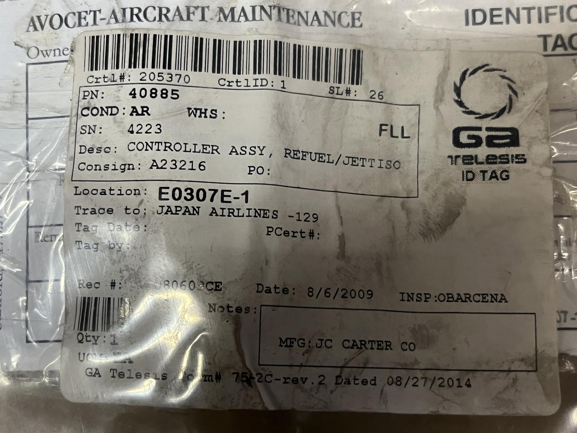 251 | 40885 | J401 | CONTROLLER ASSY, REFUEL/JETTISON, FUEL SYS, V86090 | 1 | AR | B767 | A23217 | SID09441 | View |