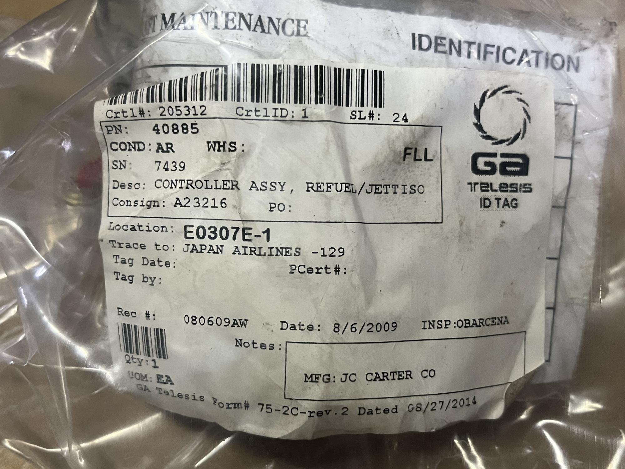 251 | 40885 | 7439 | CONTROLLER ASSY, REFUEL/JETTISON, FUEL SYS, V86090 | 1 | AR | B767 | A23216 | SID09438 | View |