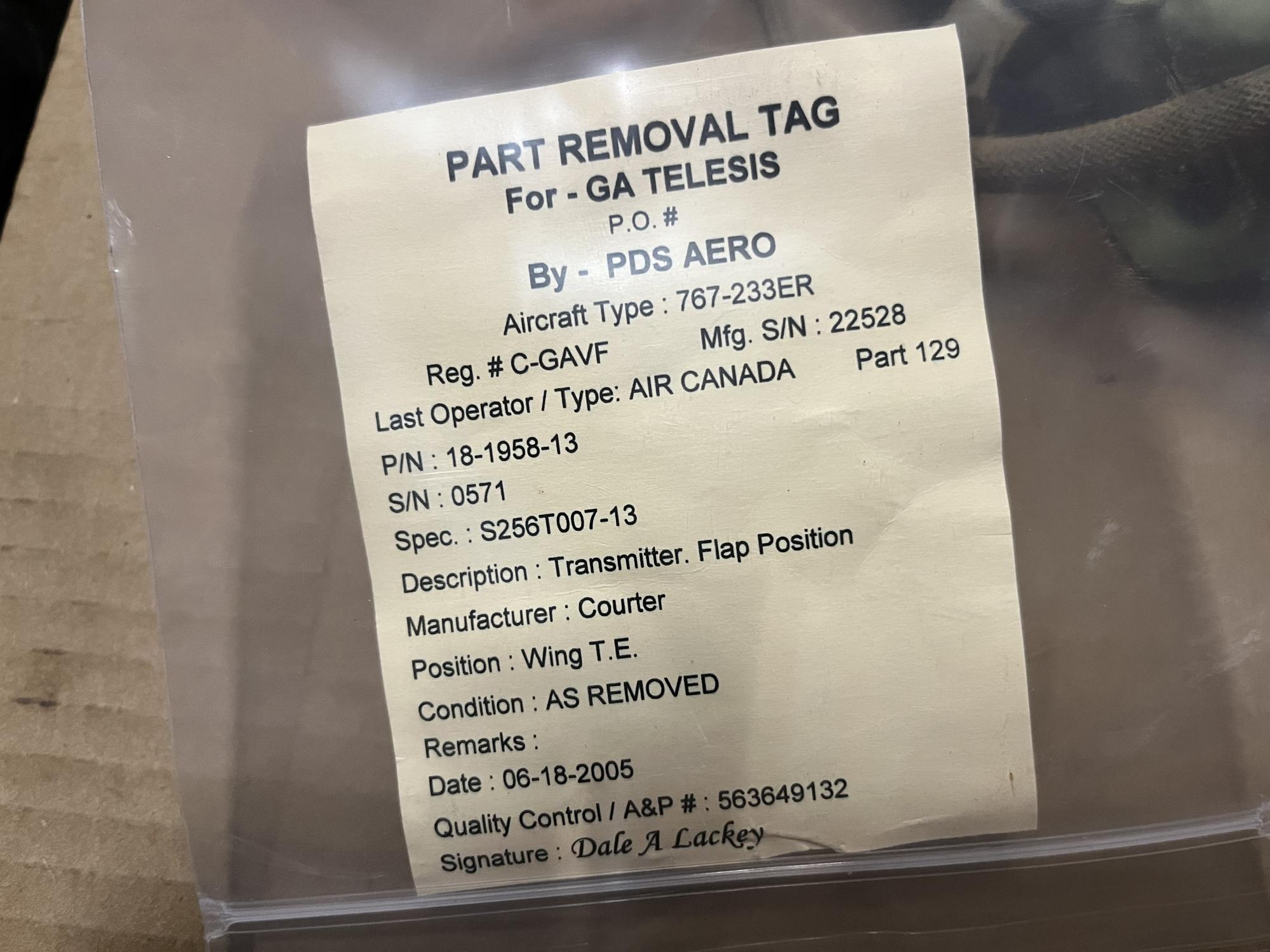 251 | 18-1958-13 | 0566 | TRANSMITTER, FLAP POSITION | 1 | AR | B767 | A22528 | SID01461 | View |