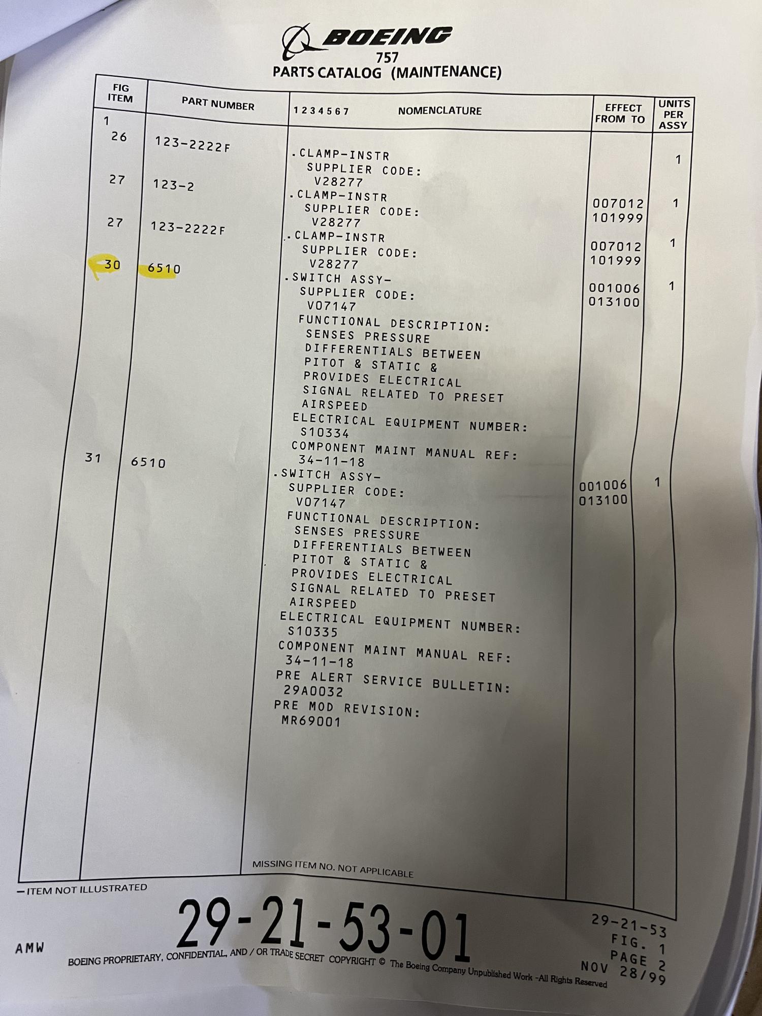 251 | 6510 | 517 | AIR SPEED SWITCH | 1 | AR | B757 | A23227ART | SID13844 | View |