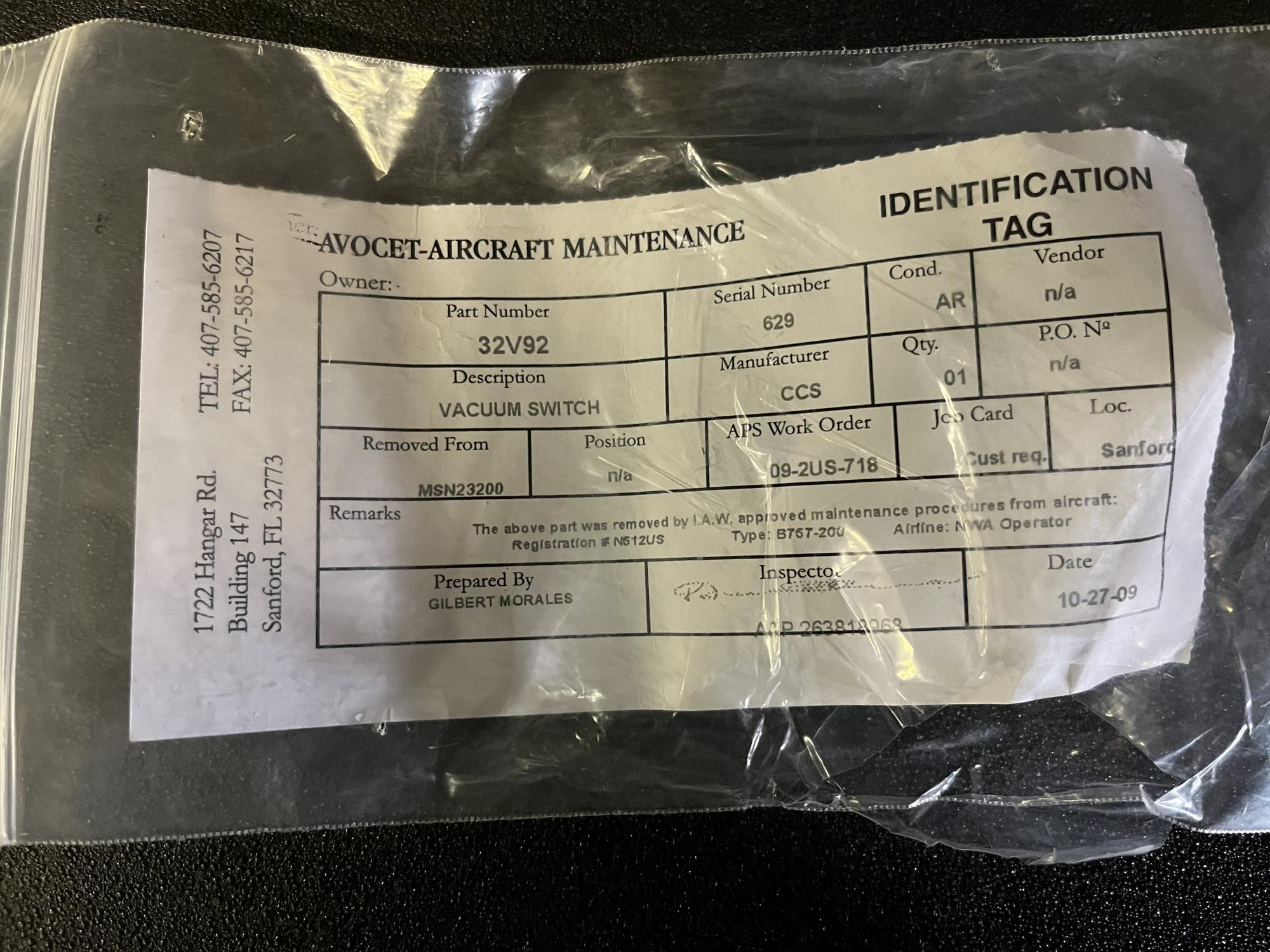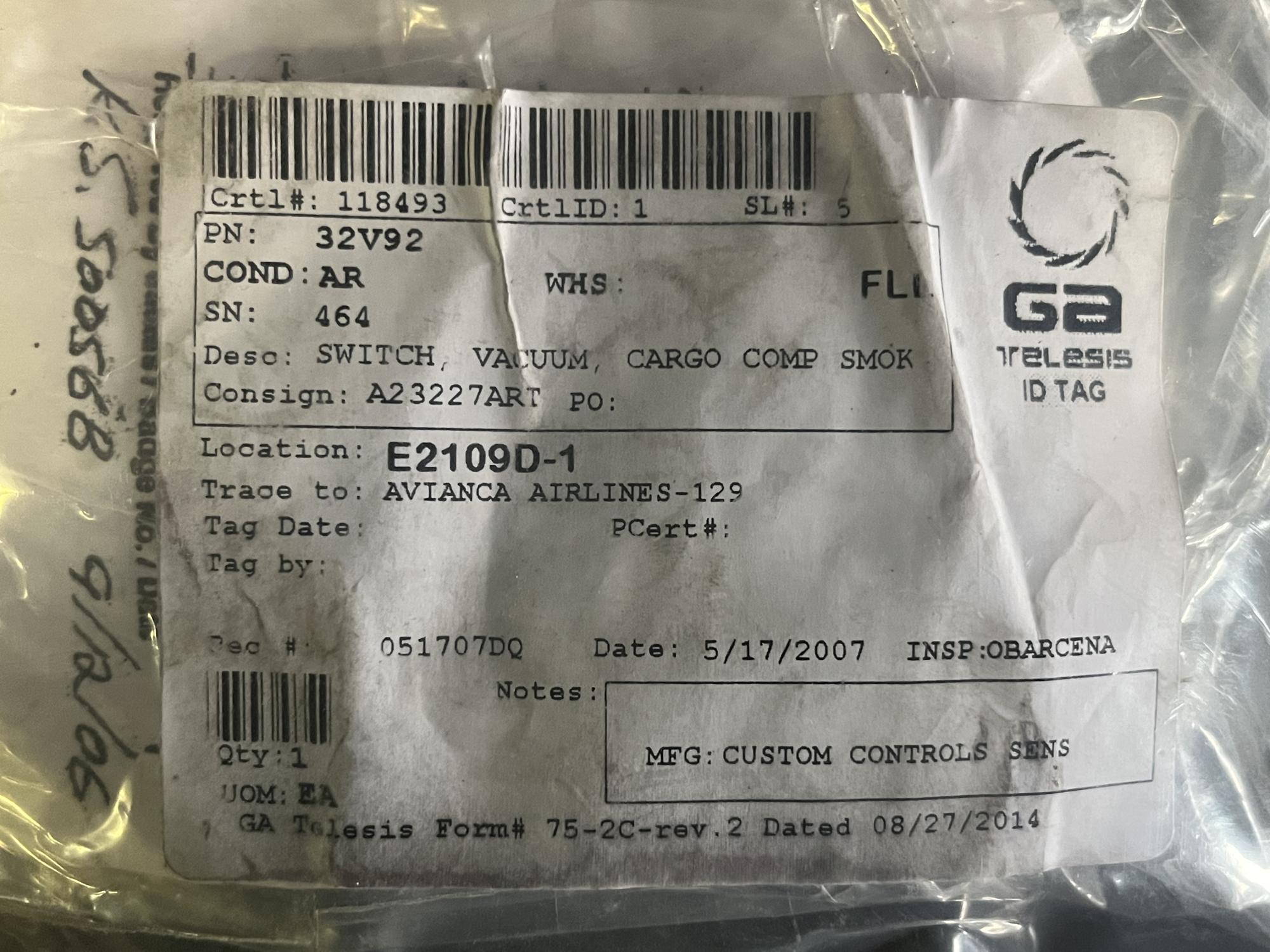 251 | 32V92 | 464 | SWITCH, VACUUM, CARGO COMP SMOKE DETECT, V09049 | 1 | AR | B757 | A23227ART | SID05203 | View |