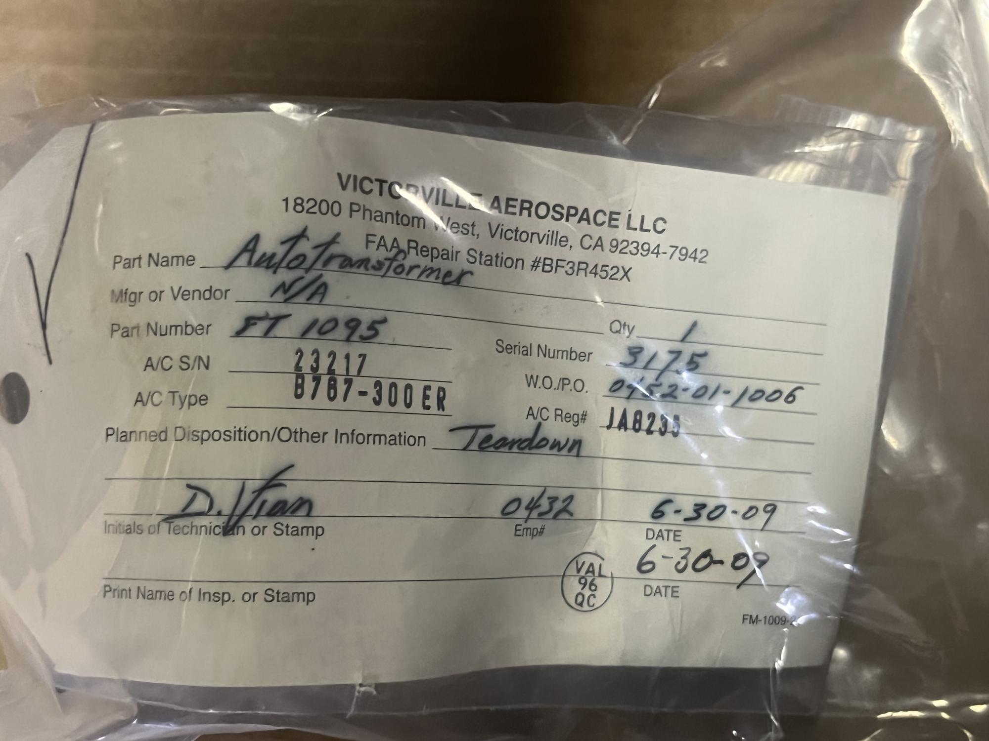 252 | FT1095 | 3175 | AUTOTRANSFORMER, GENERAL ILLUMINATION, V14752 | 1 | AR | B767 | A23217 | SID19259 | View |