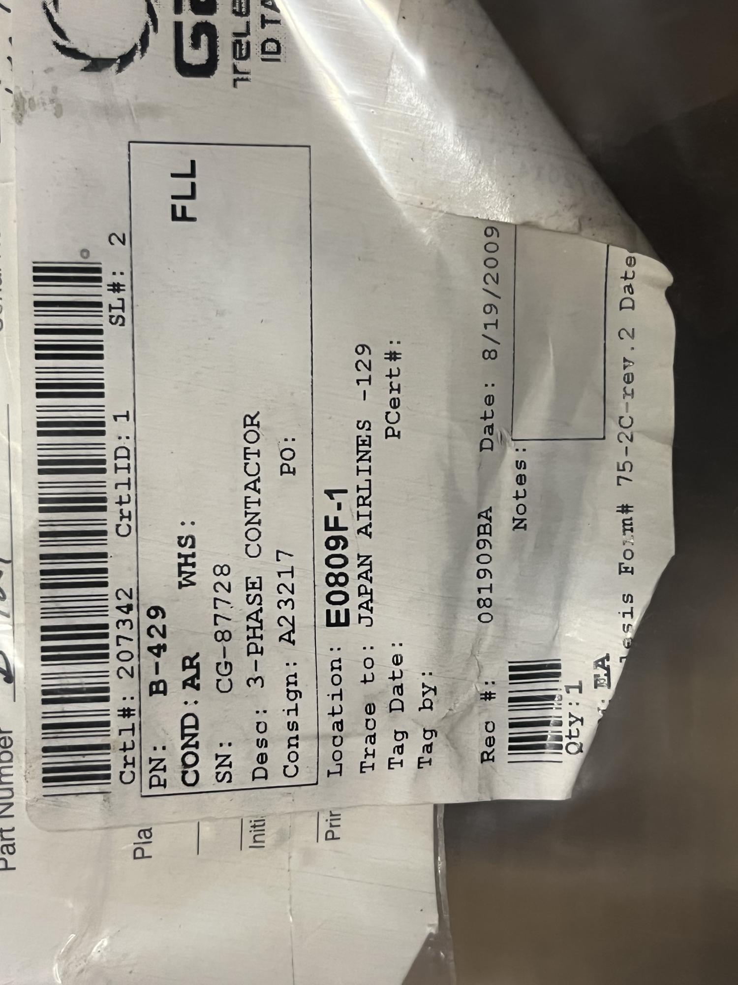 252 | B-429 | CG-87728 | 3-PHASE CONTACTOR | 1 | AR | B767 | A23217 | SID18389 | View |