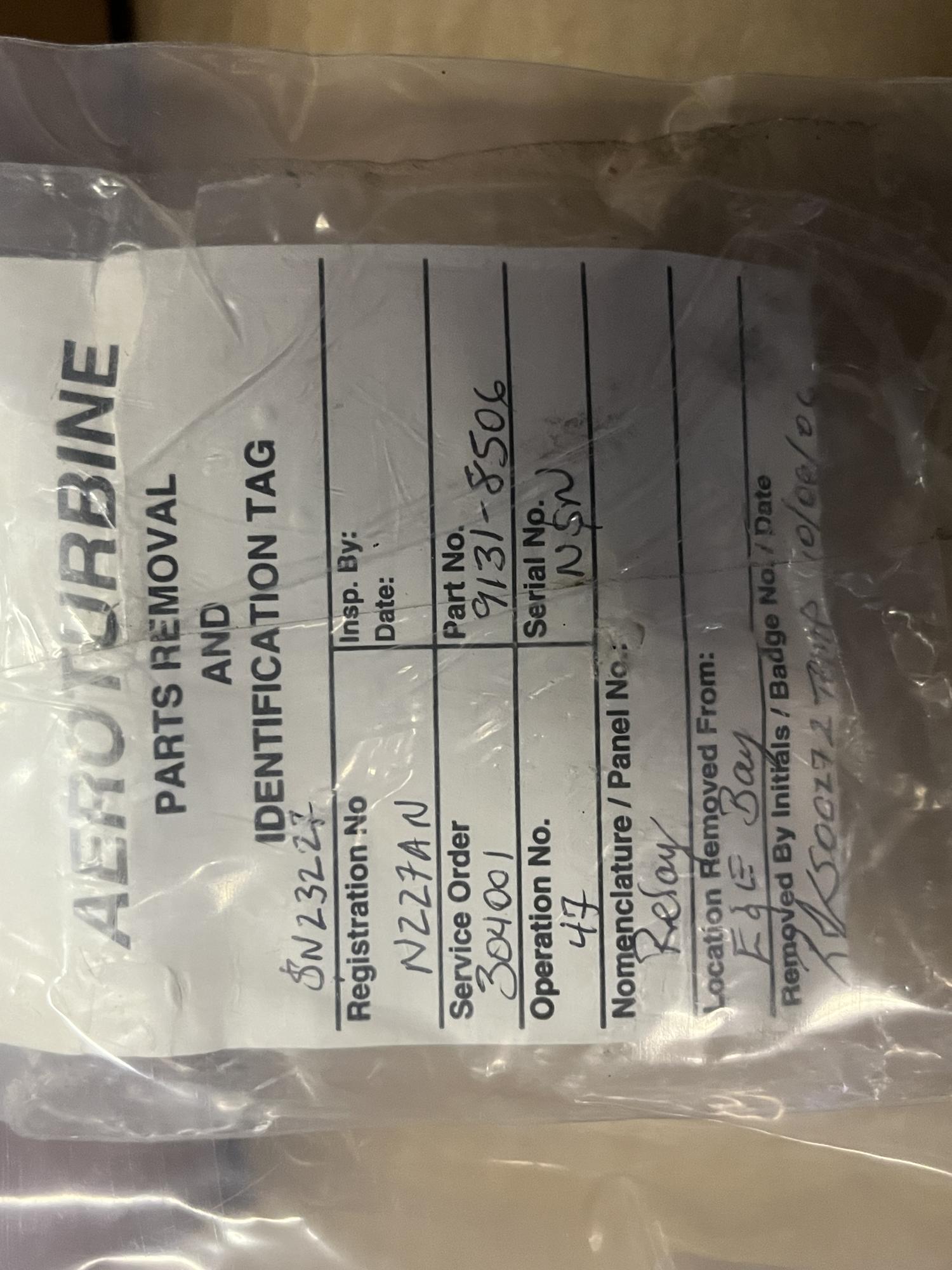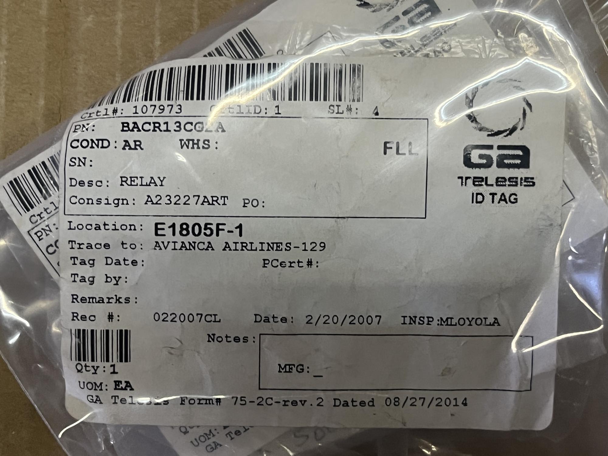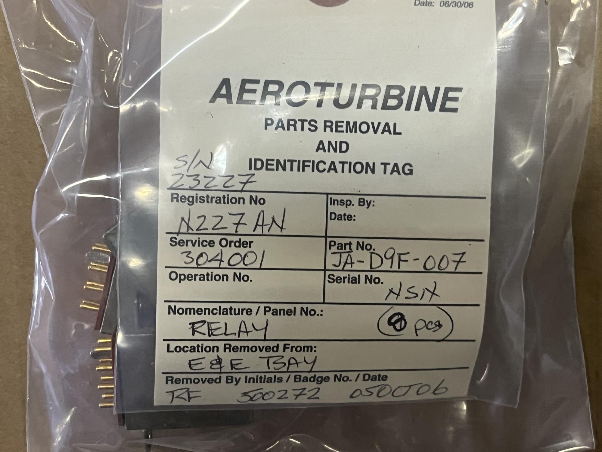 252 | JAD9F007 | RELAY ASSY, K10561-62, V58657 | 8 | AR | B757 | A23227ART | SID19499 | View | |