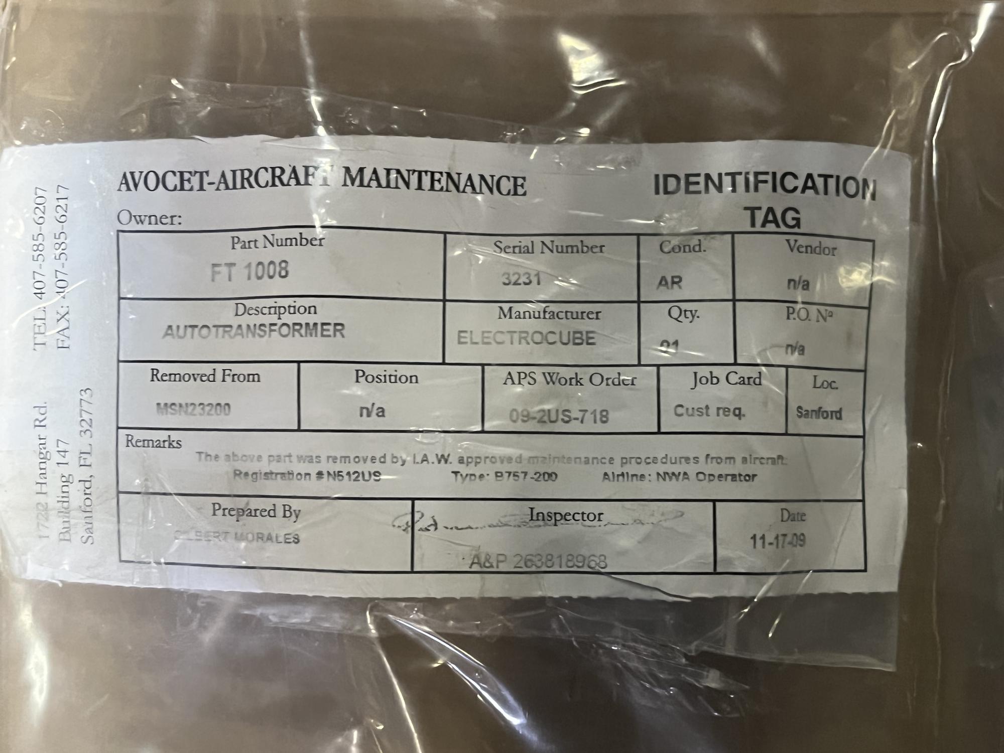 252 | FT1007 | 2145 | AUTOTRANSFORMER, TE FLAP ELECTRONIC SYS, V14752 | 1 | AR | B757 | A23227ART | SID19235 | View |
