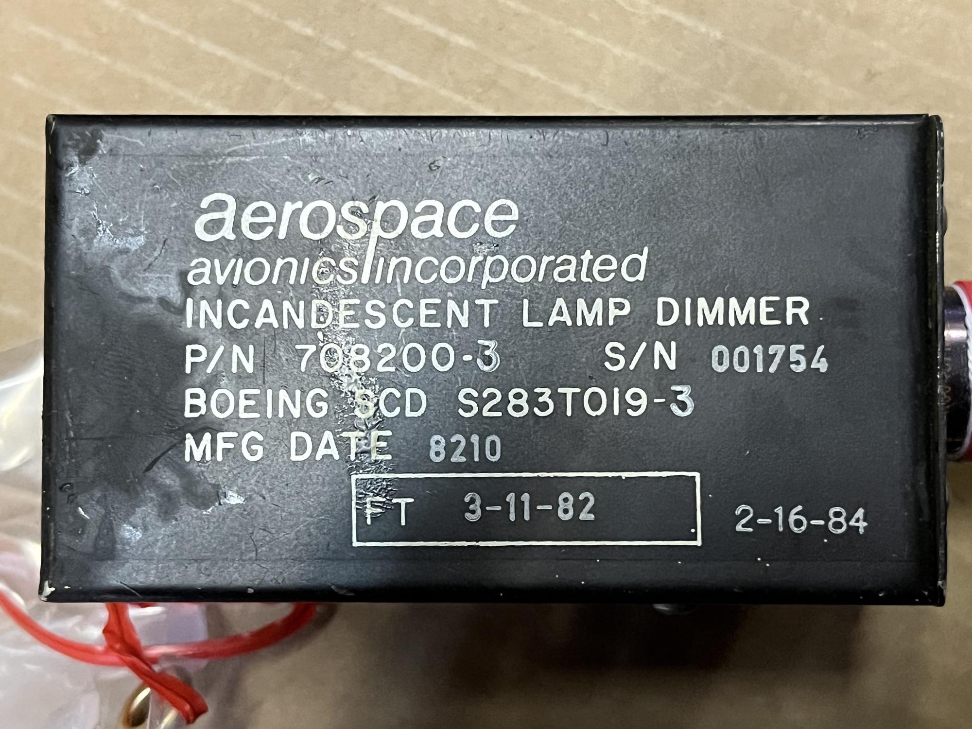 252 | 708200-3 | 007001 | CONTROL UNIT, LIGHT DIMMER, V19623 | 1 | AR | B767 | A23217 | SID14547 | View |