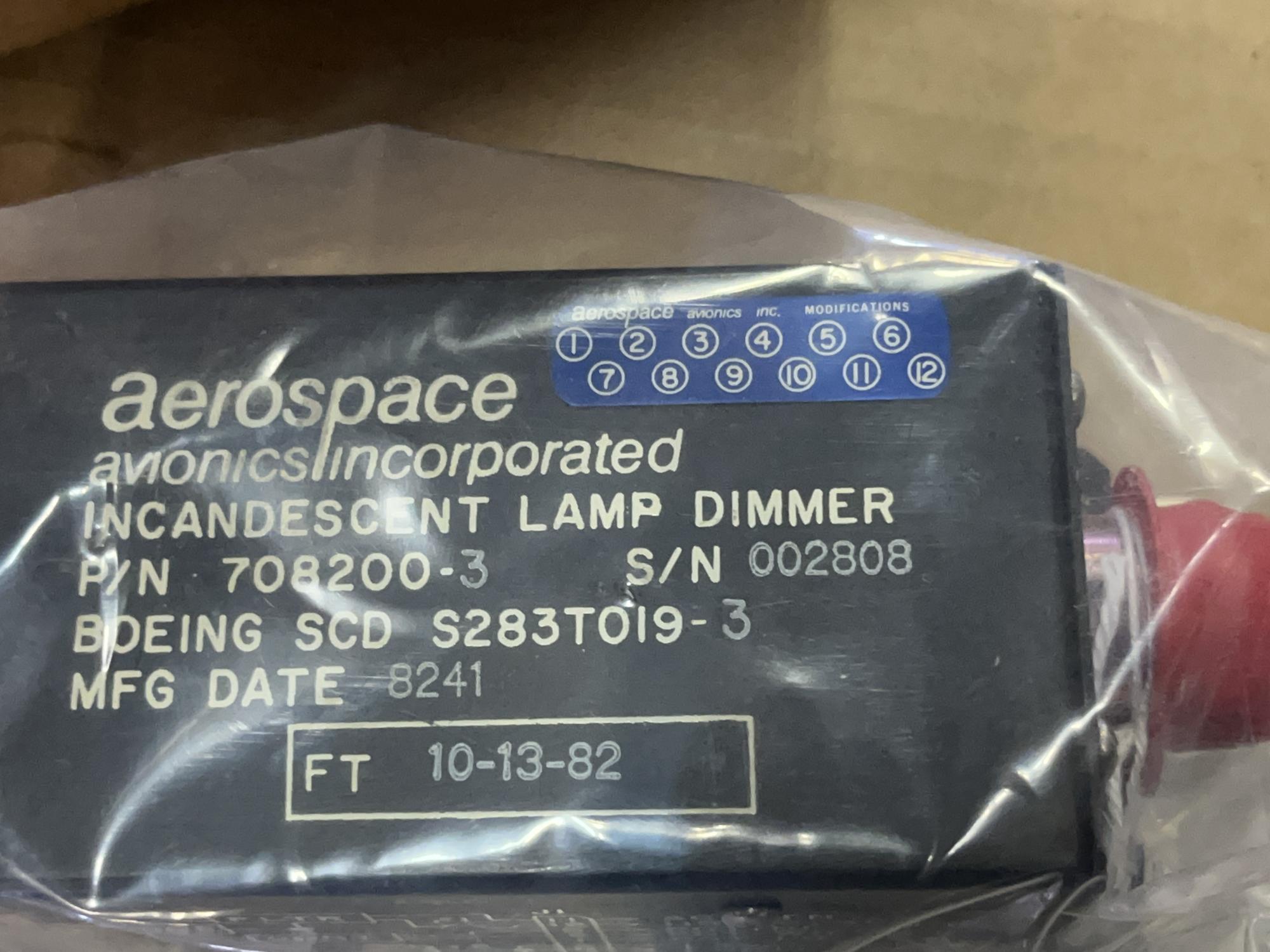 252 | 708200-3 | 002808 | CONTROL UNIT, LIGHT DIMMER, V19623 | 1 | AR | B757 | A23227ART | SID14537 | View |