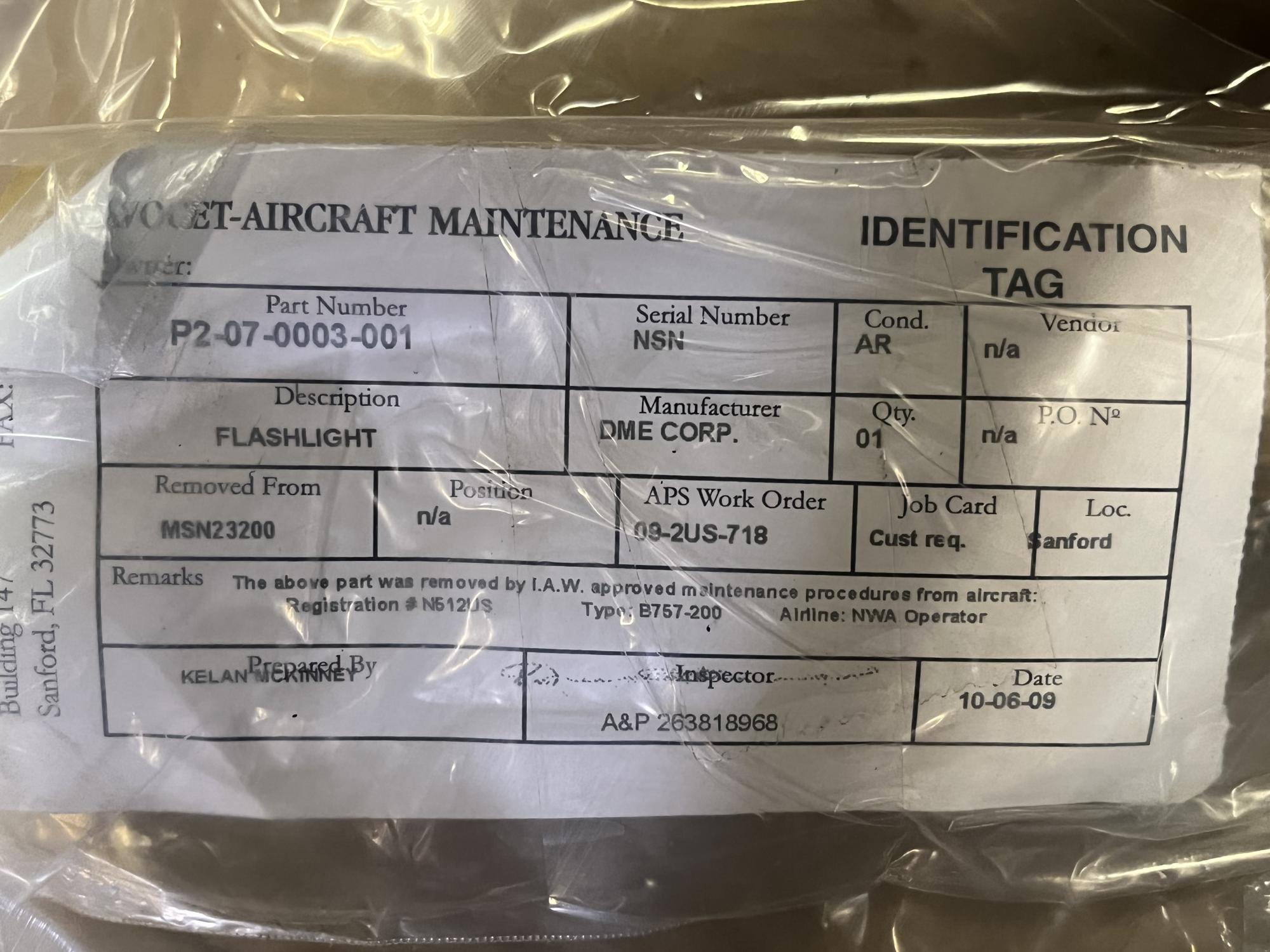 252 | P2-07-0004-201 | NSN72943 | FLASHLIGHT ASSY | 1 | AR | B757 | A23200 | SID19902 | View |