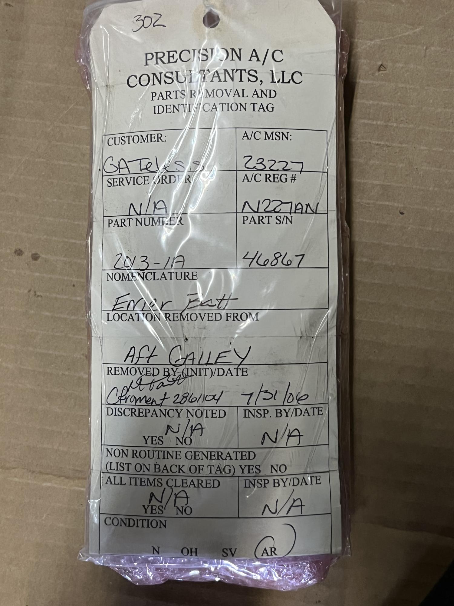 252 | 2013-1A | 46867 | BATTERY ASSY, NICKEL CADMIUM, 6 CELL, V60540 | 1 | AR | B757 | A23227ART | SID01643 | View |