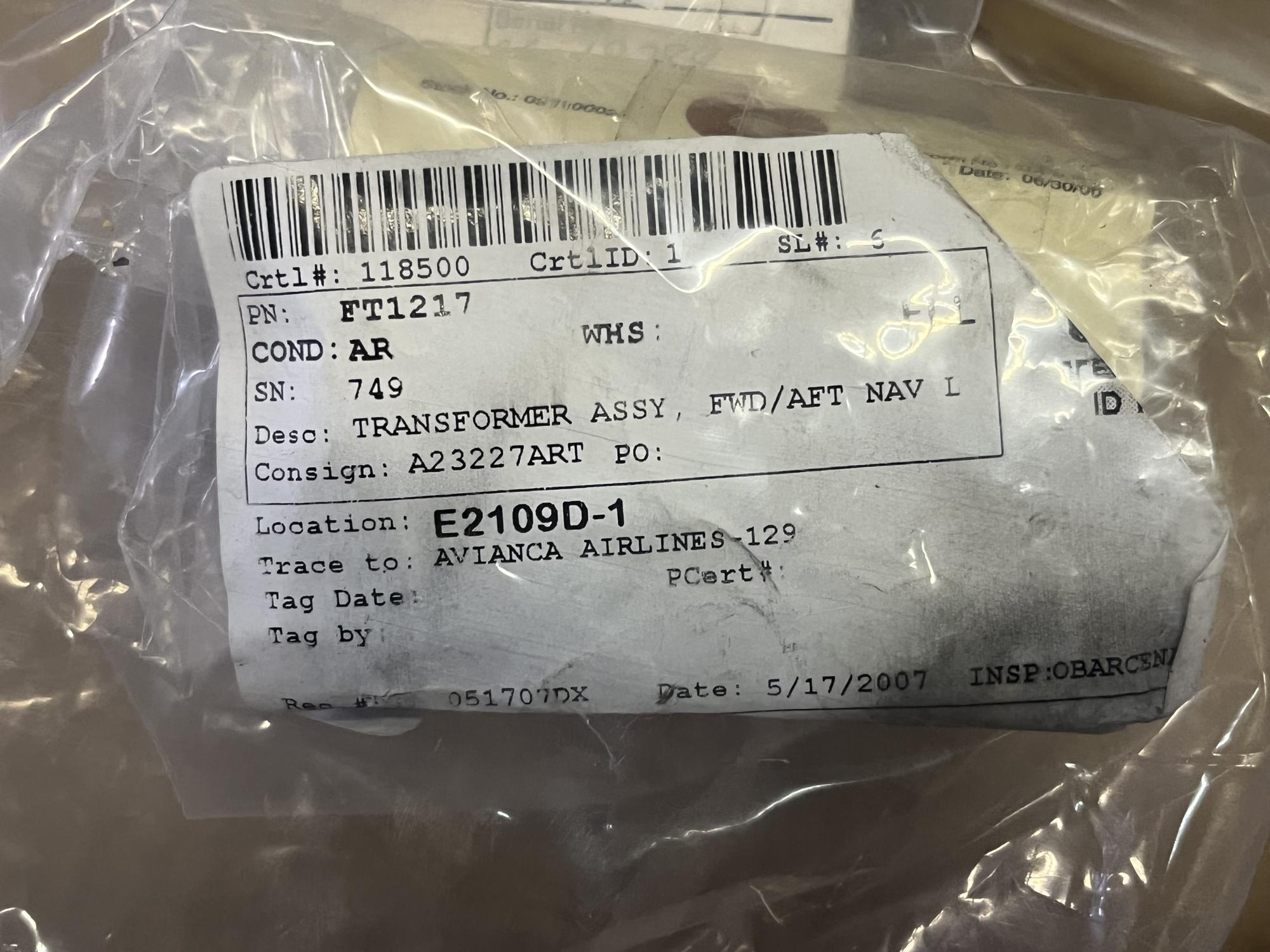 252 | FT1217 | 749 | TRANSFORMER ASSY, FWD/AFT NAV LIGHTS, V14752 | 1 | AR | B757 | A23227ART | SID19268 | View |