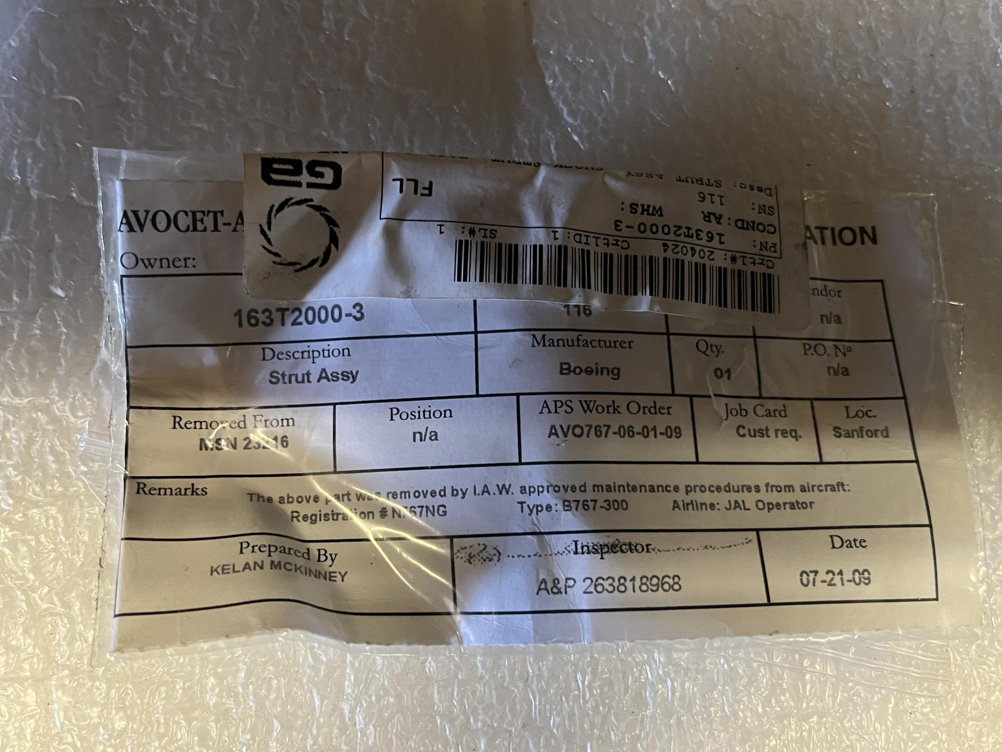 261 | 163T2000-3 | 010 | STRUT ASSY, SHOCK STRUT, TAIL SKID, V81205 | 1 | AR | B767 | A23217 | SID01285 | View |