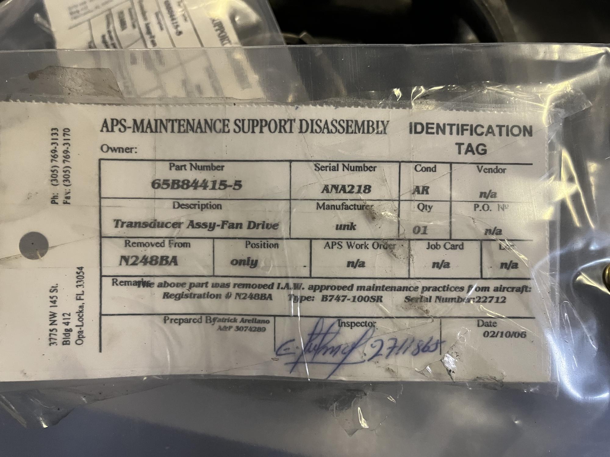 265 | 65B84415-5 | NSN26640 | TRANSDUCER ASSY FAN DRIVE | 1 | AR | B747 | A22712 | SID14067 | View |