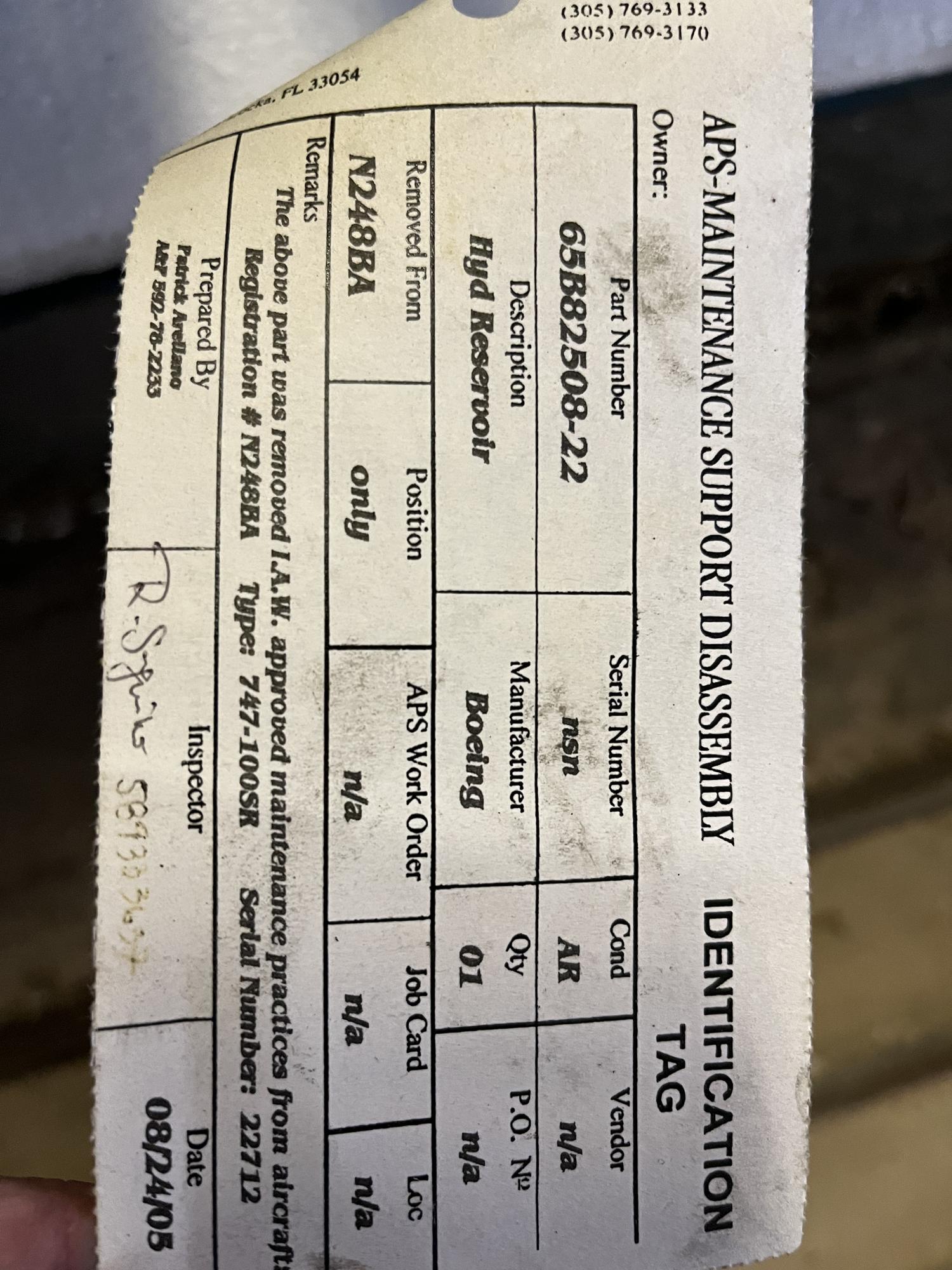 265 | 65B82508-22 | NSN26387 | HYD RESERVOIR | 1 | AR | B747 | A22712 | SID14050 | View |