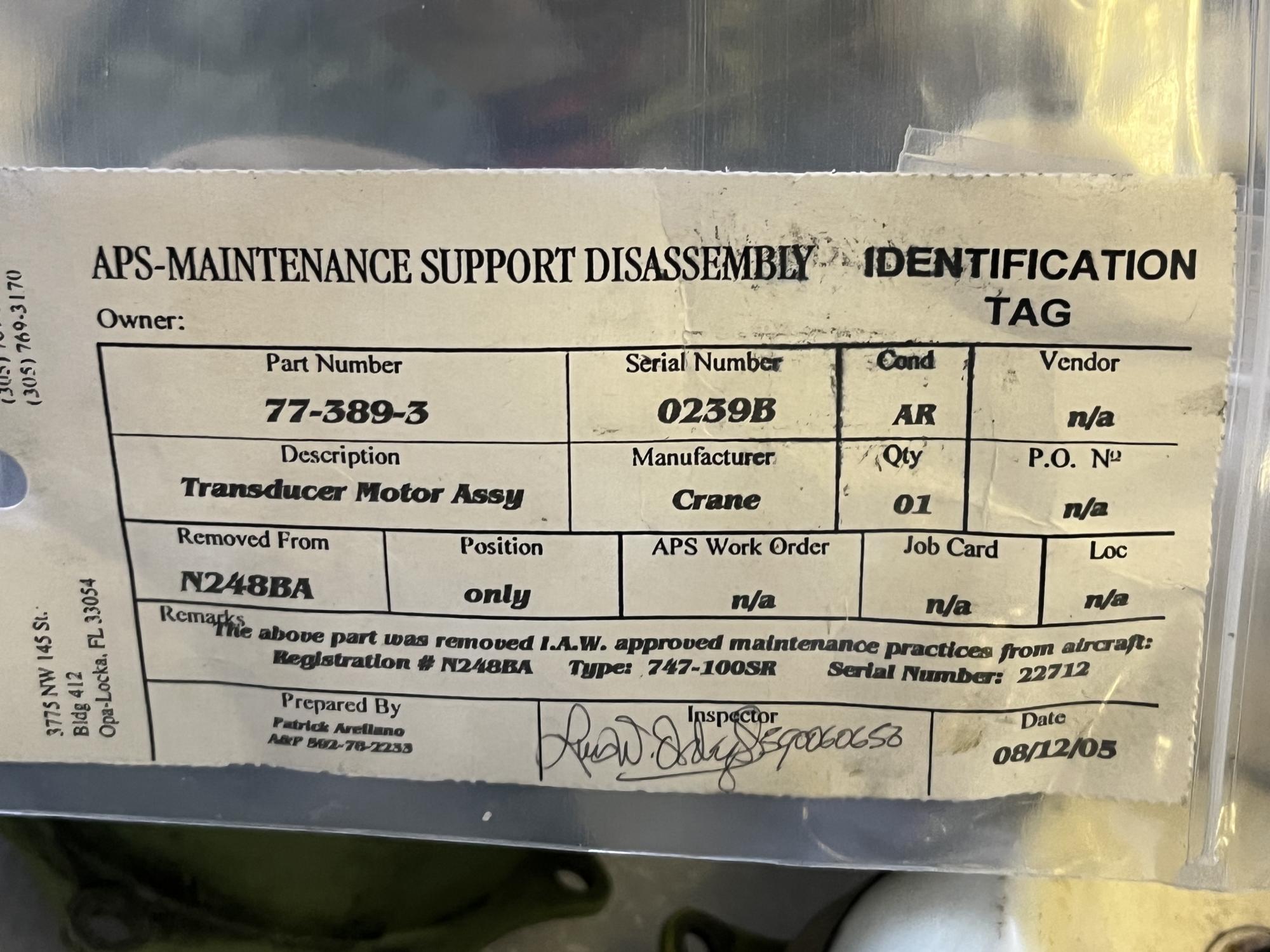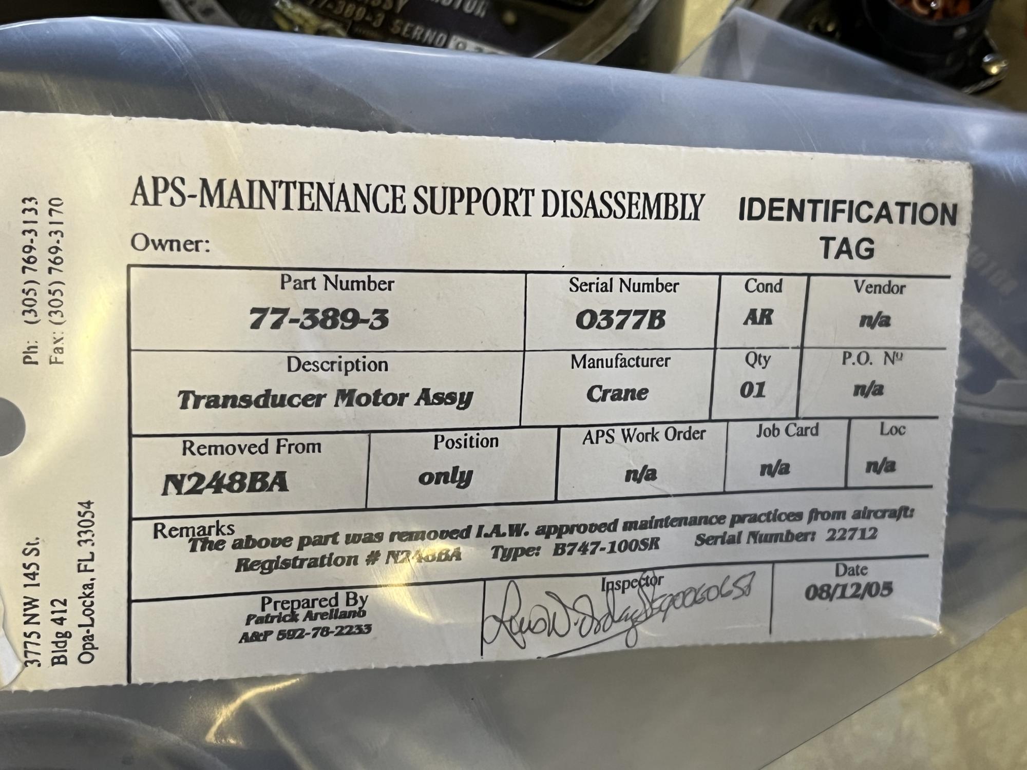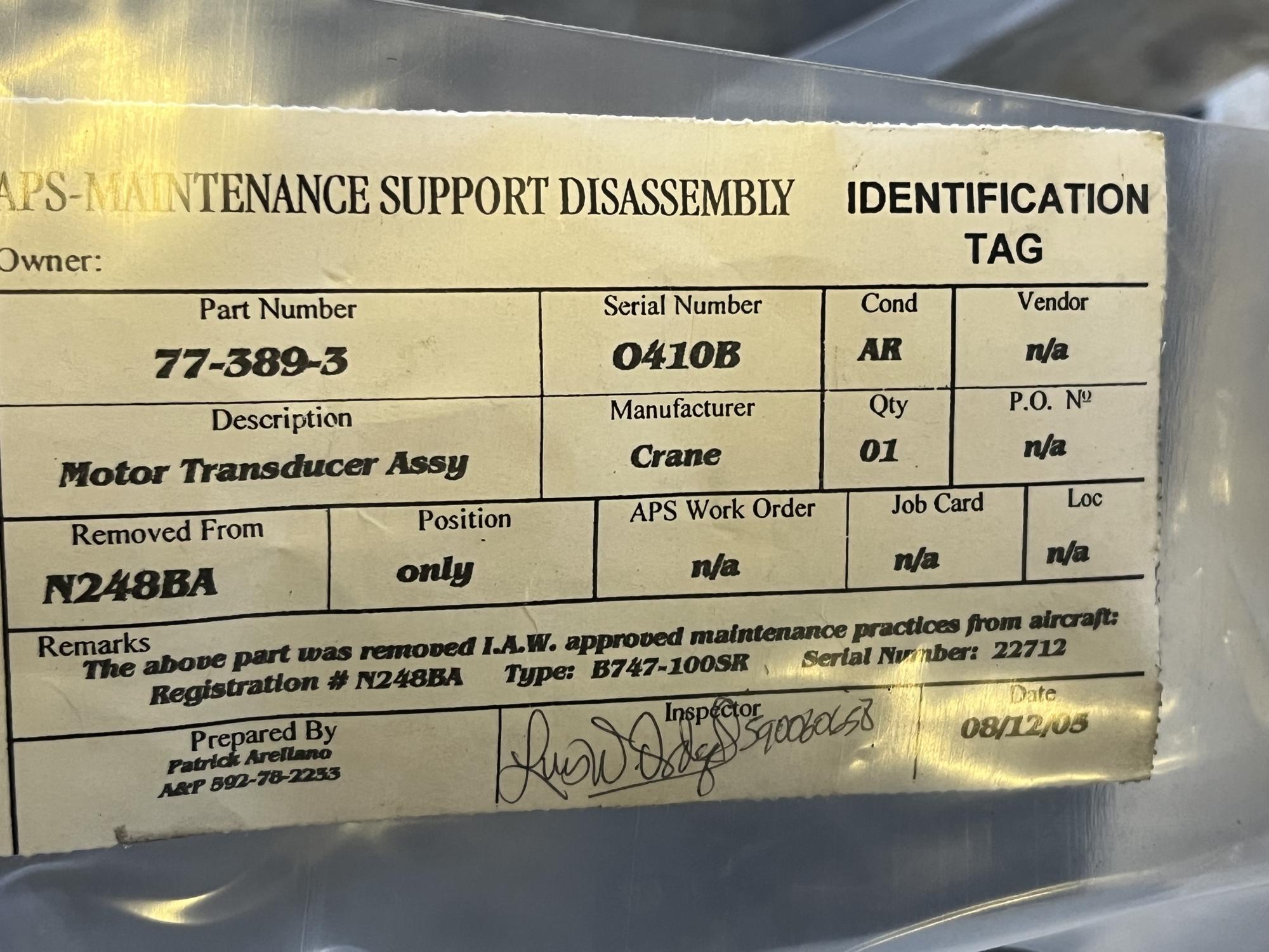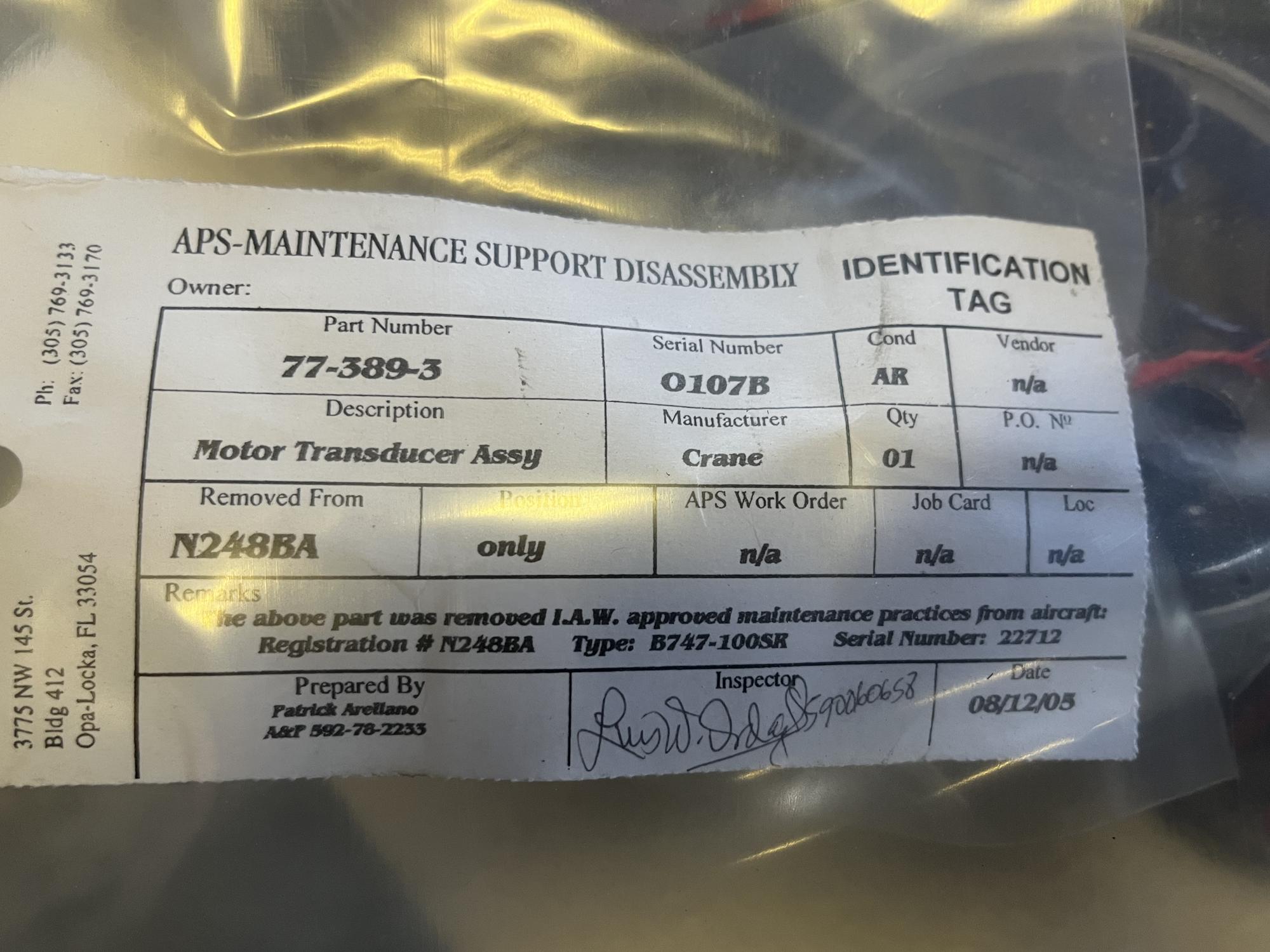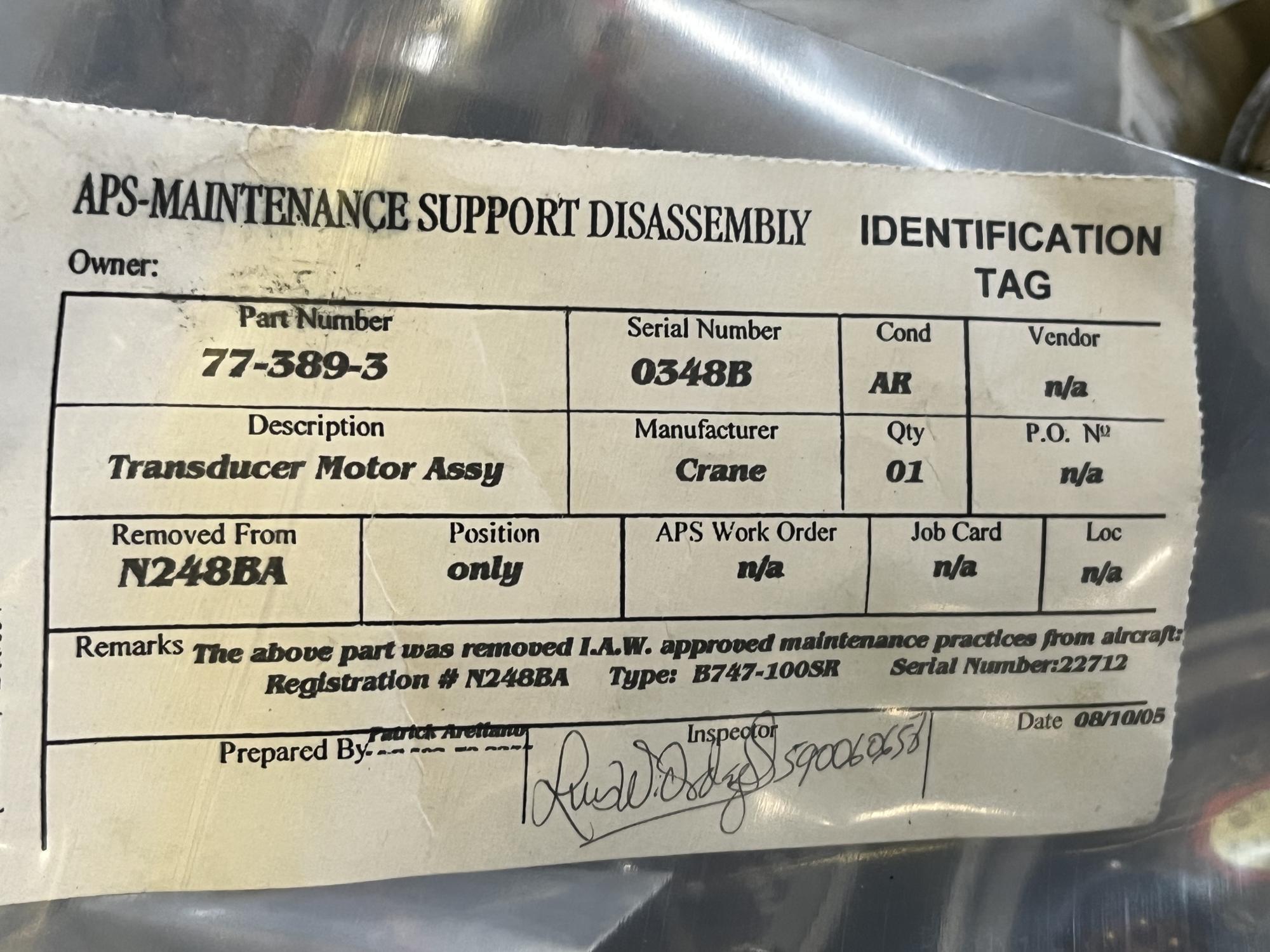 265 | 77-389-3 | 0348B | MOTOR TRANSDUCER ASSY | 1 | AR | B747 | A22712 | SID15065 | View |