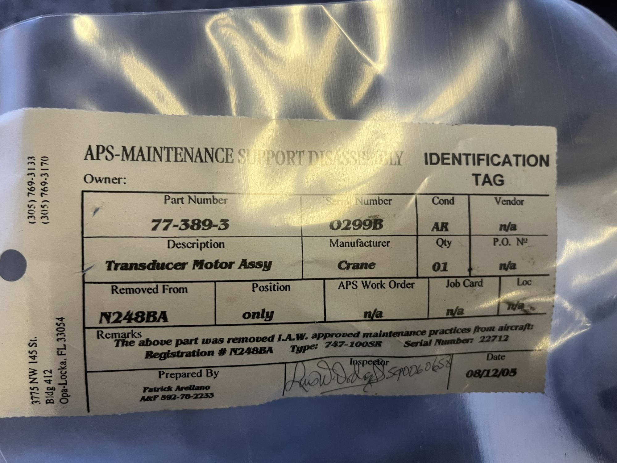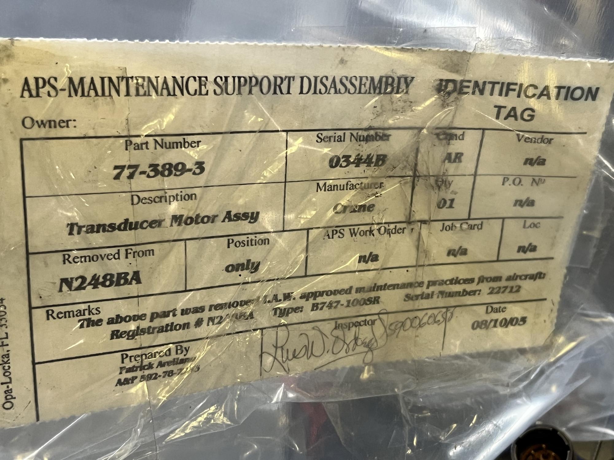 265 | 77-389-3 | 0344B | MOTOR TRANSDUCER ASSY | 1 | AR | B747 | A22712 | SID15064 | View |