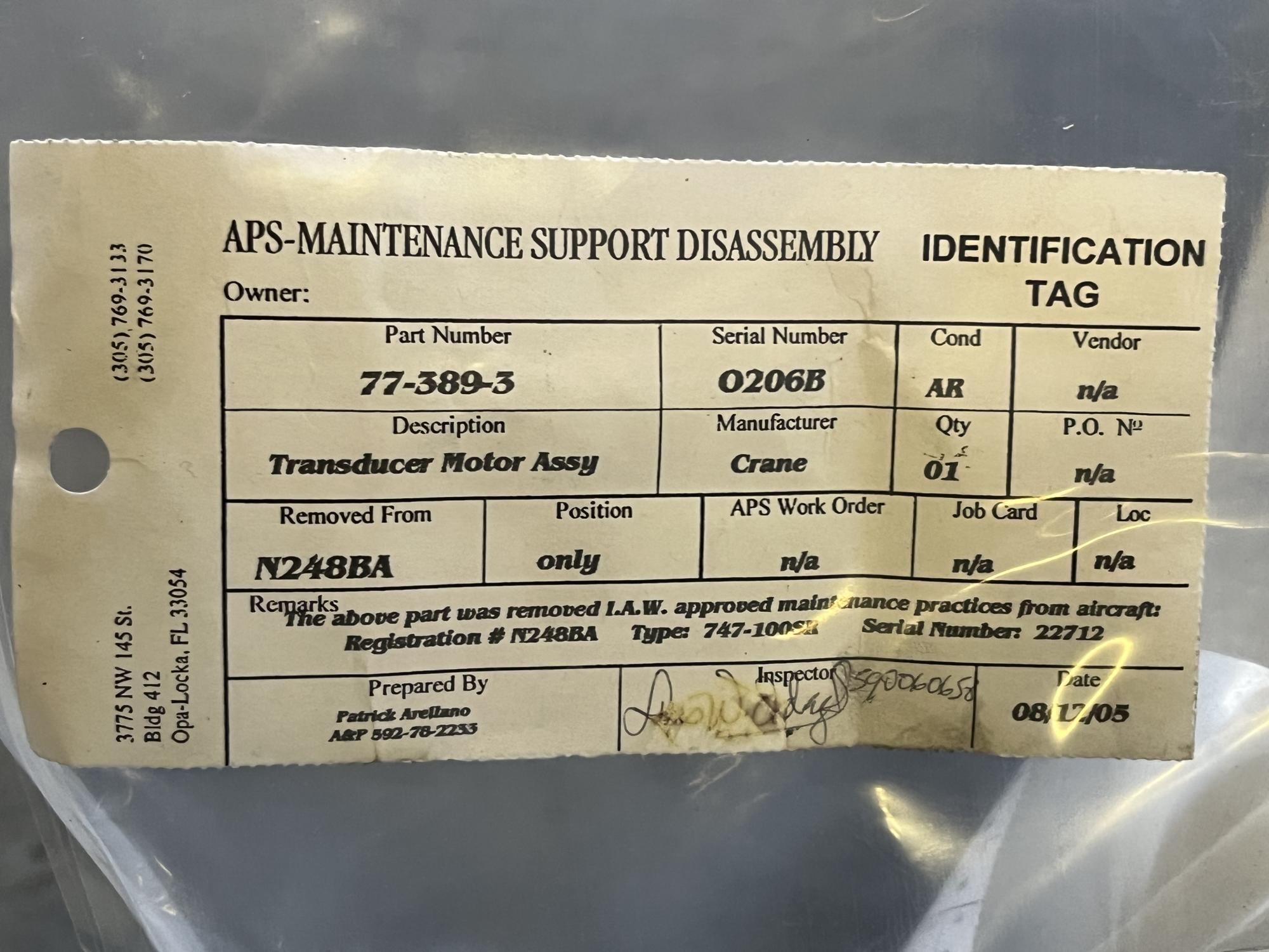 265 | 77-389-3 | 0206B | MOTOR TRANSDUCER ASSY | 1 | AR | B747 | A22712 | SID15059 | View |