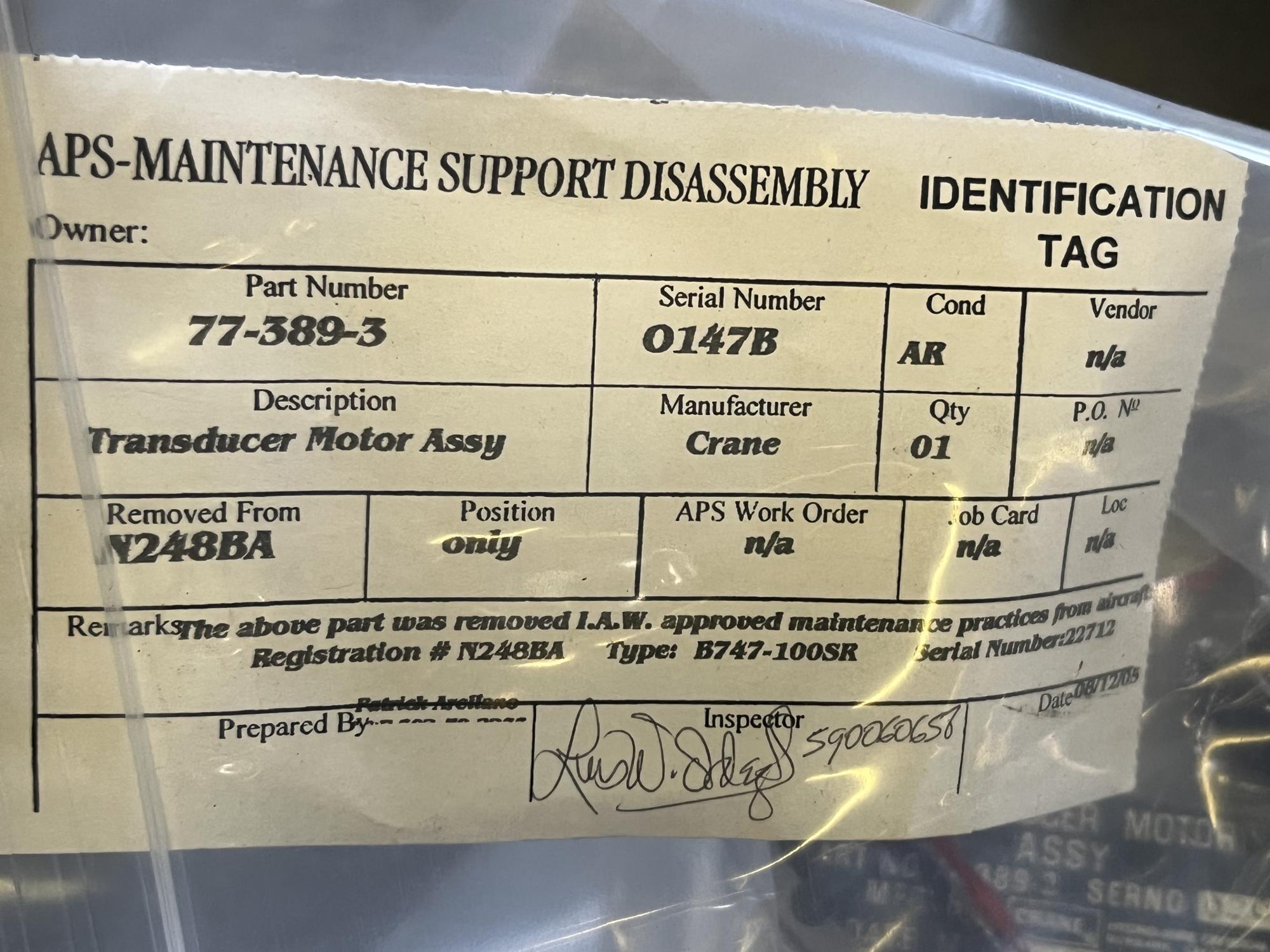 265 | 77-389-3 | 0147B | MOTOR TRANSDUCER ASSY | 1 | AR | B747 | A22712 | SID15057 | View |