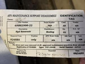 265 | 65B82508-22 | NSN23237 | HYD RESERVOIR | 1 | AR | B747 | A22594 | SID14049 | View |