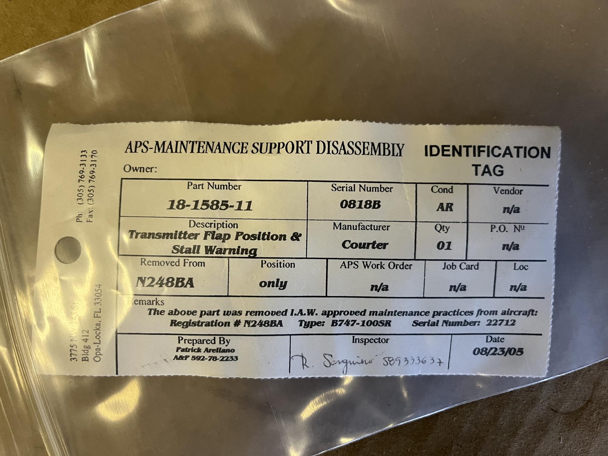 266 | 18-1585-11 | 0759B | FLAP POSITION XMTR | 1 | AR | B747 | A22712 | SID01450 | View |