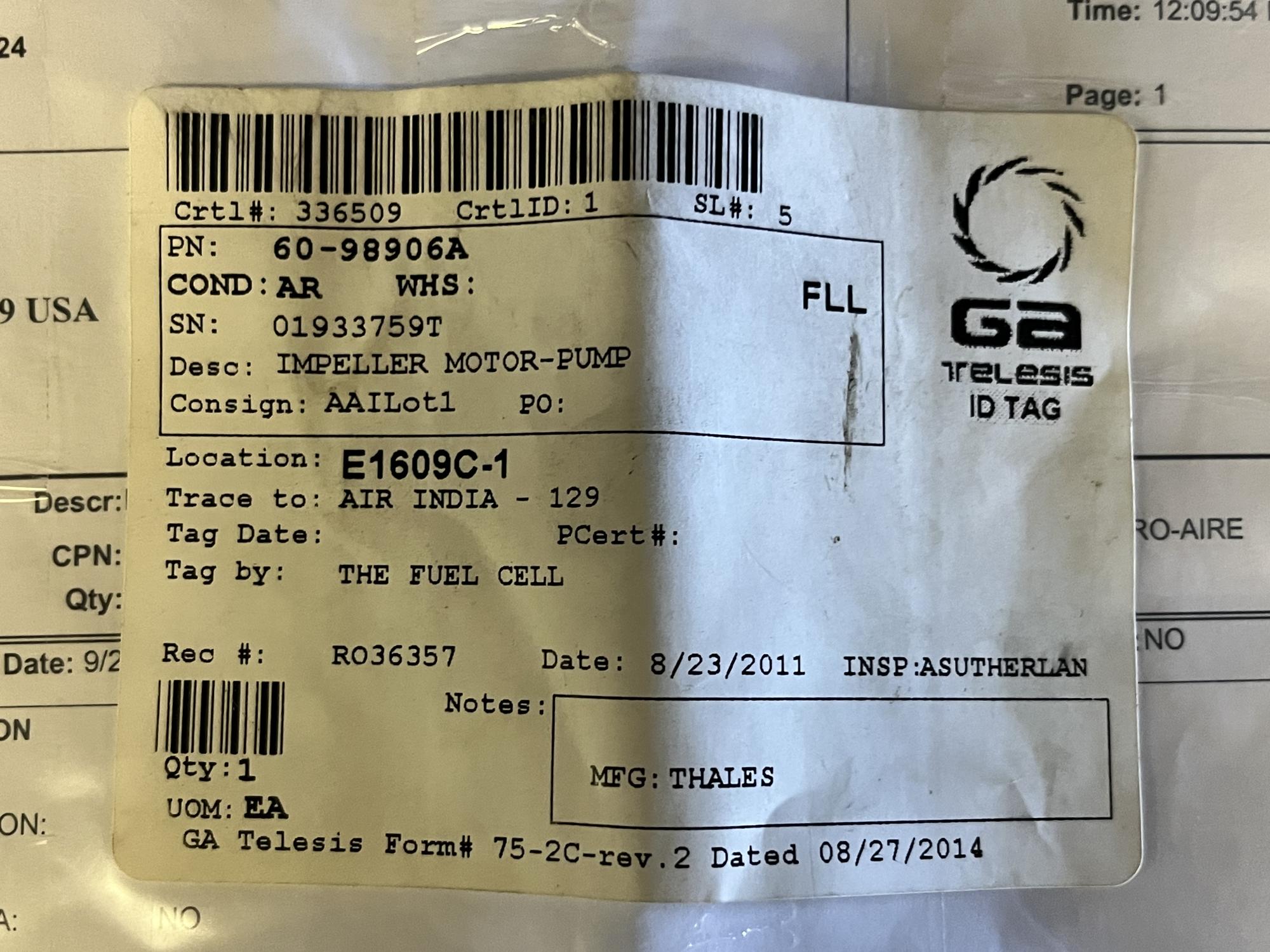 266 | 60-98906A | 01933759T | IMPELLER MOTOR-PUMP | 1 | AR | B747 | AAILOT1 | SID13198 | View |