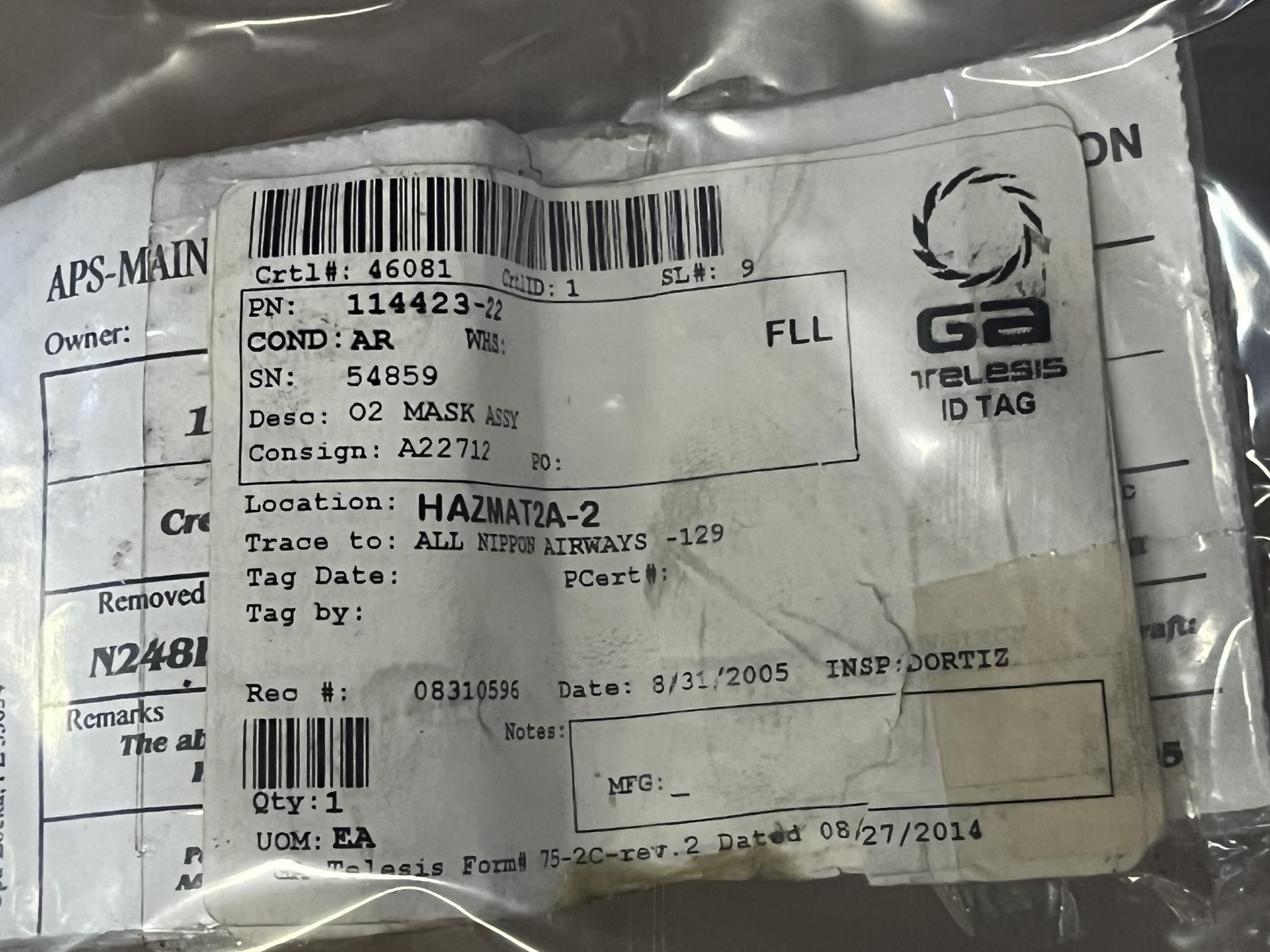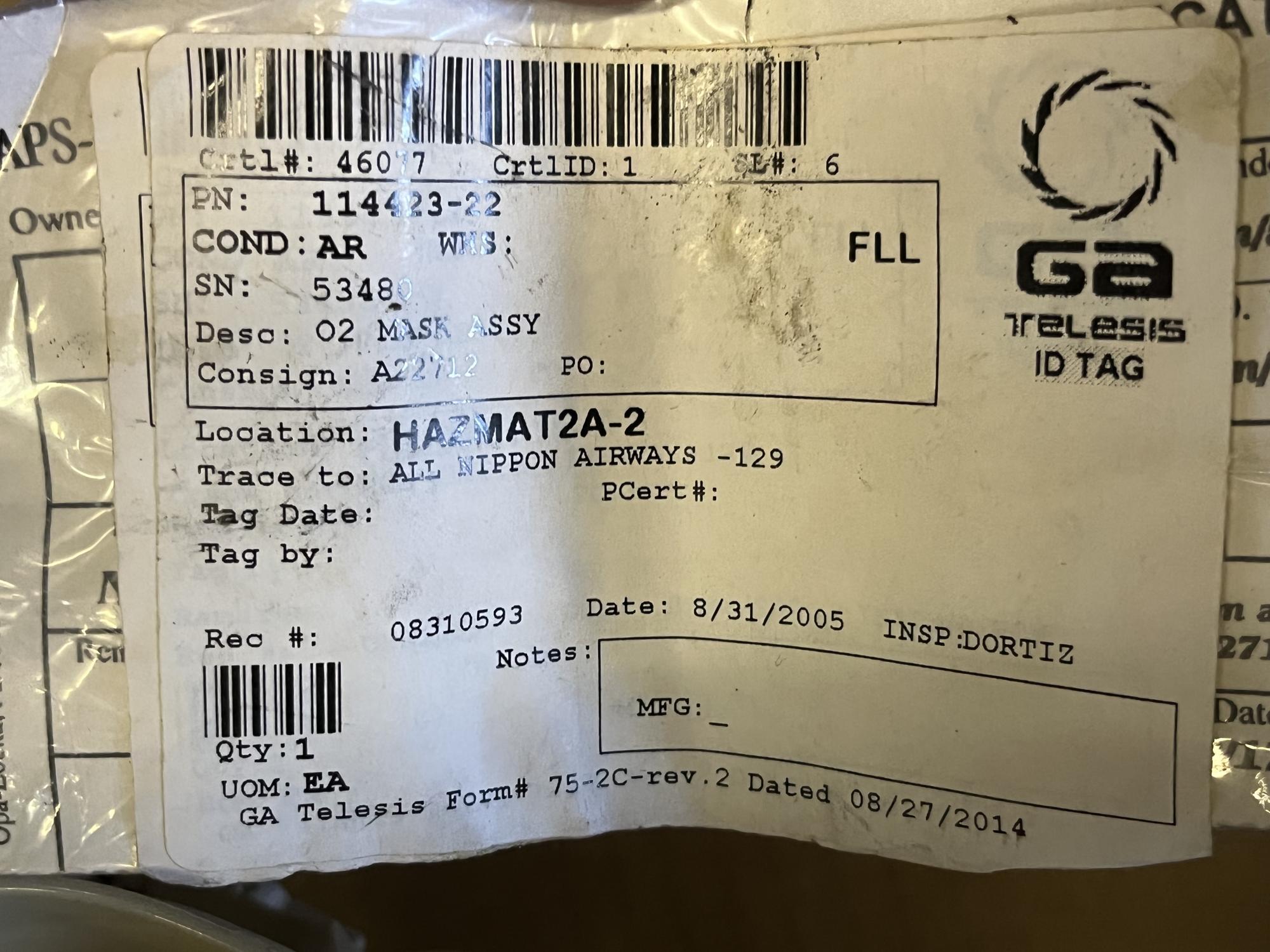 266 | 114423-22 | 53480 | O2 MASK ASSY | 1 | AR | B747 | A22712 | SID00396 | View |