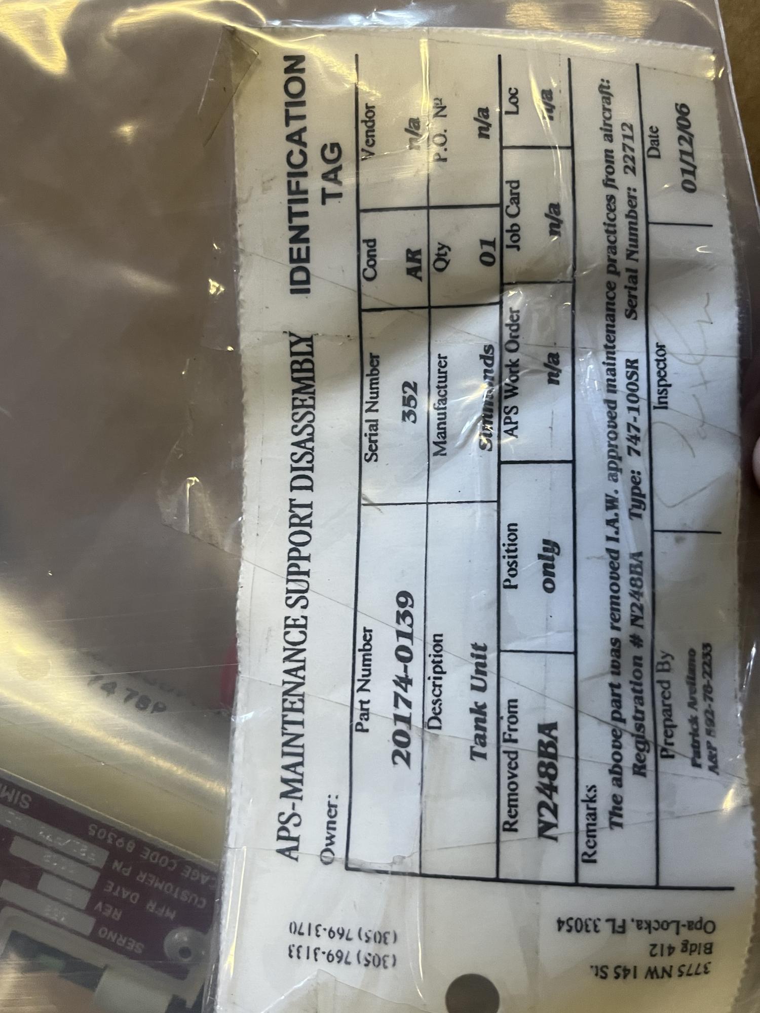 266 | 20174-0139 | 352 | TANK UNIT | 1 | AR | B747 | A22712 | SID01673 | View |