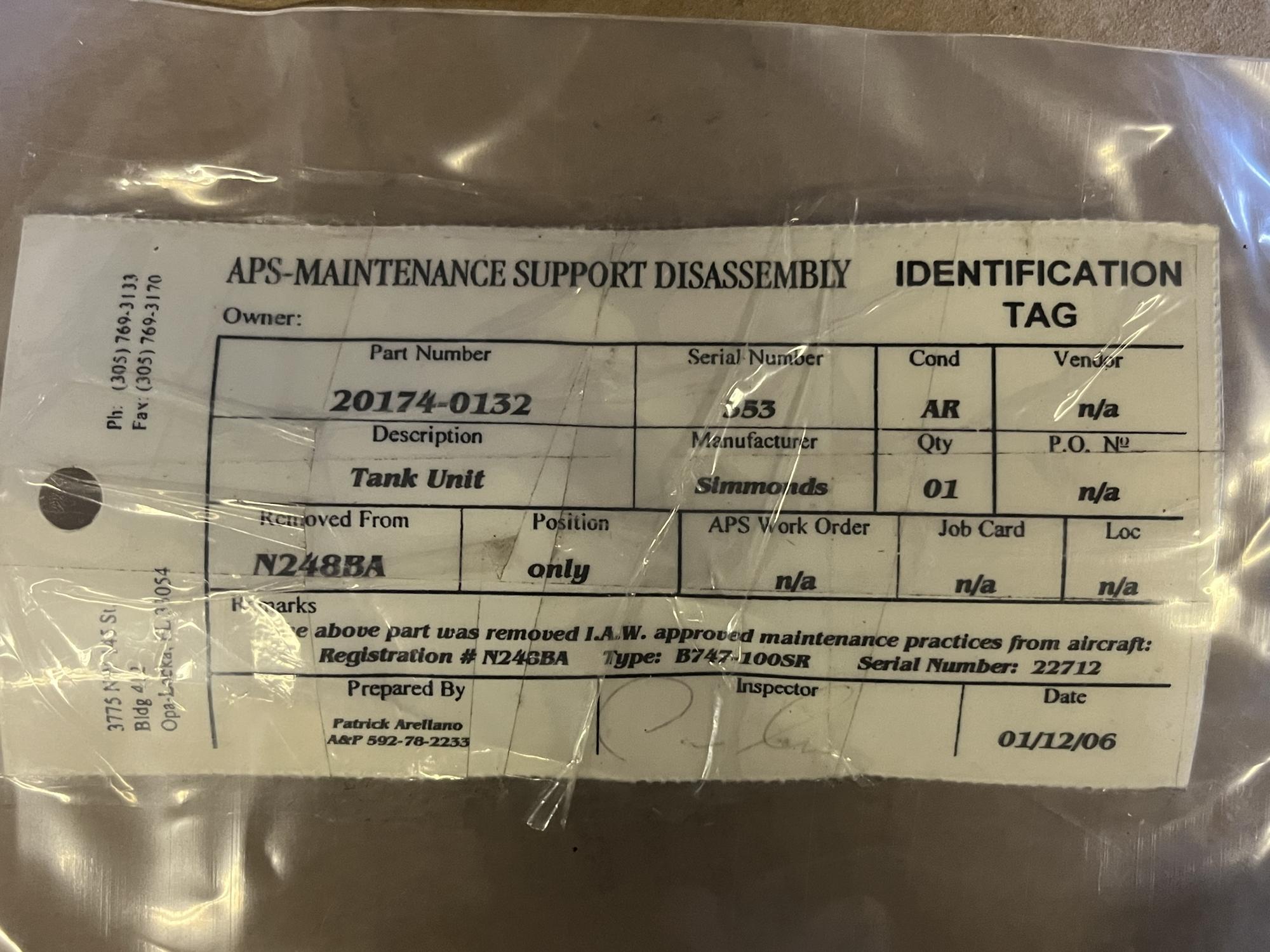 266 | 20174-0132 | 353 | TANK UNIT | 1 | AR | B747 | A22712 | SID01662 | View |