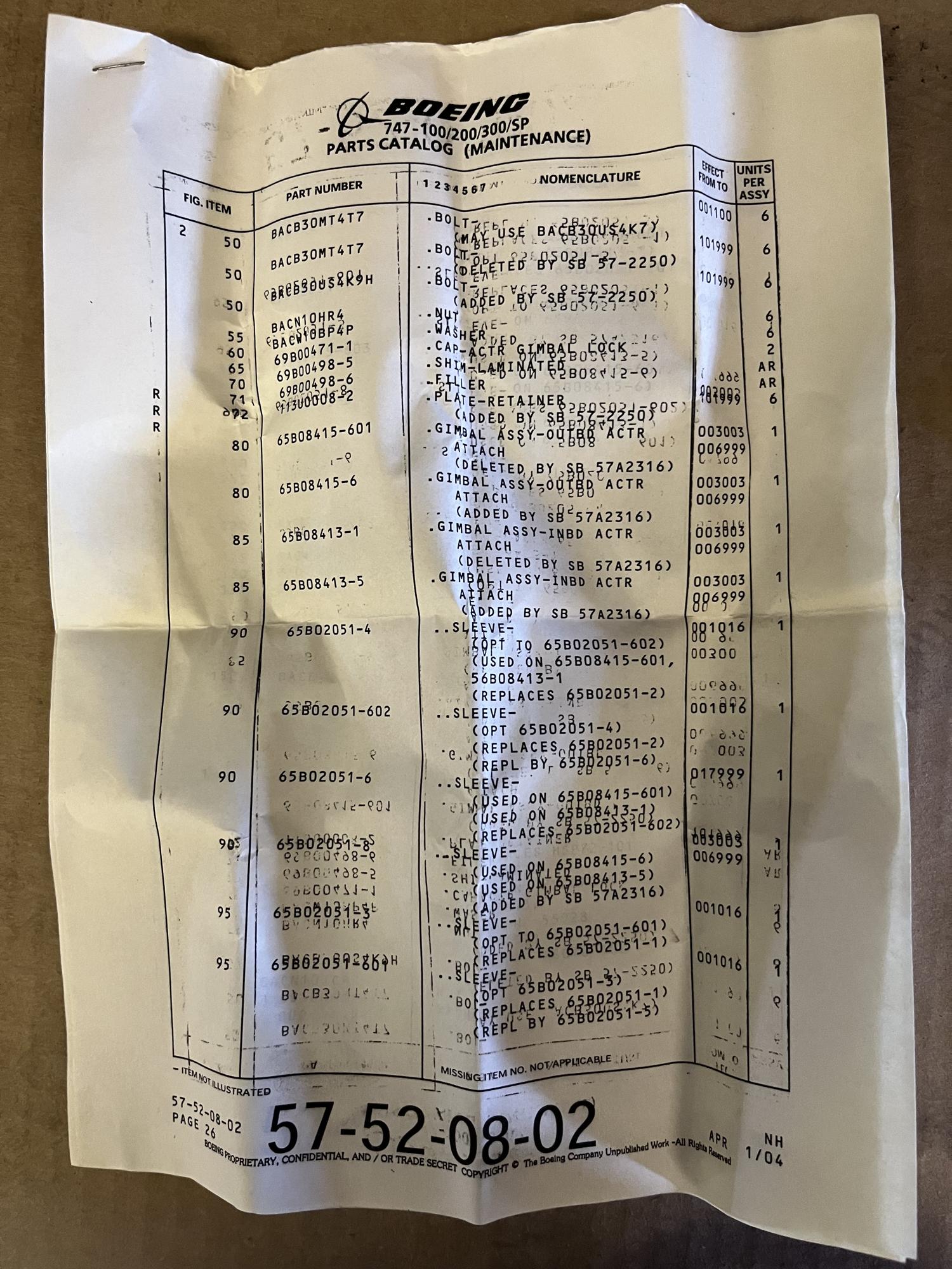 266 | 65B08413-1 | NSN106965 | GIMBAL | 1 | AR | B747 | A22712 | SID14000 | View |