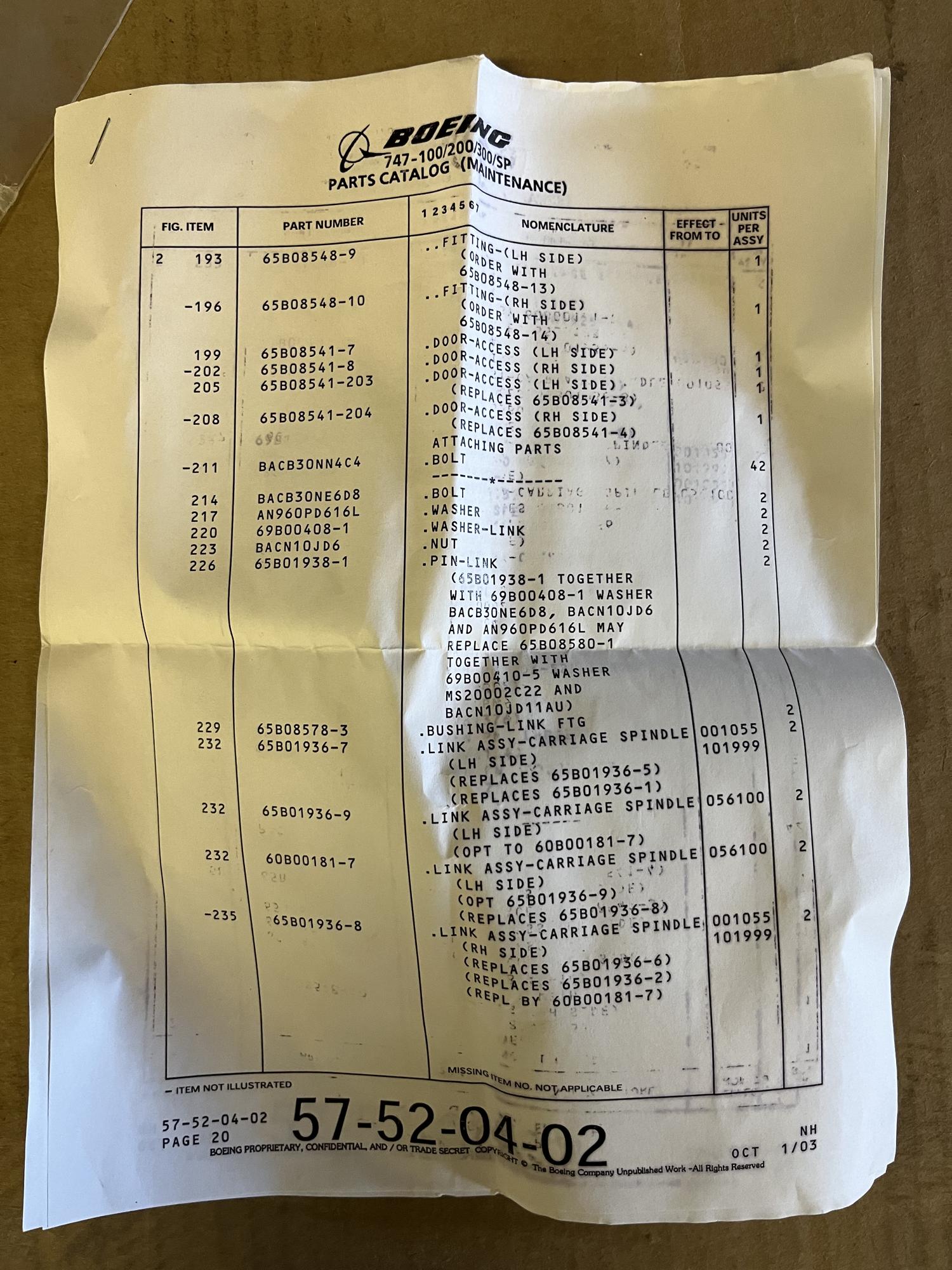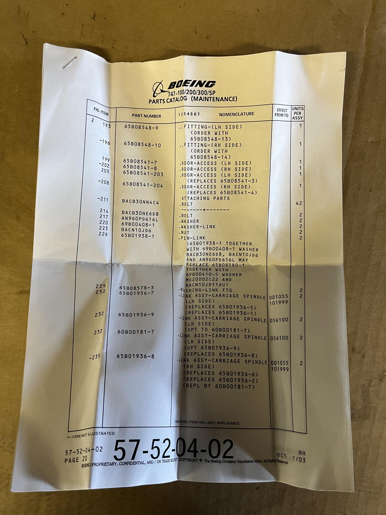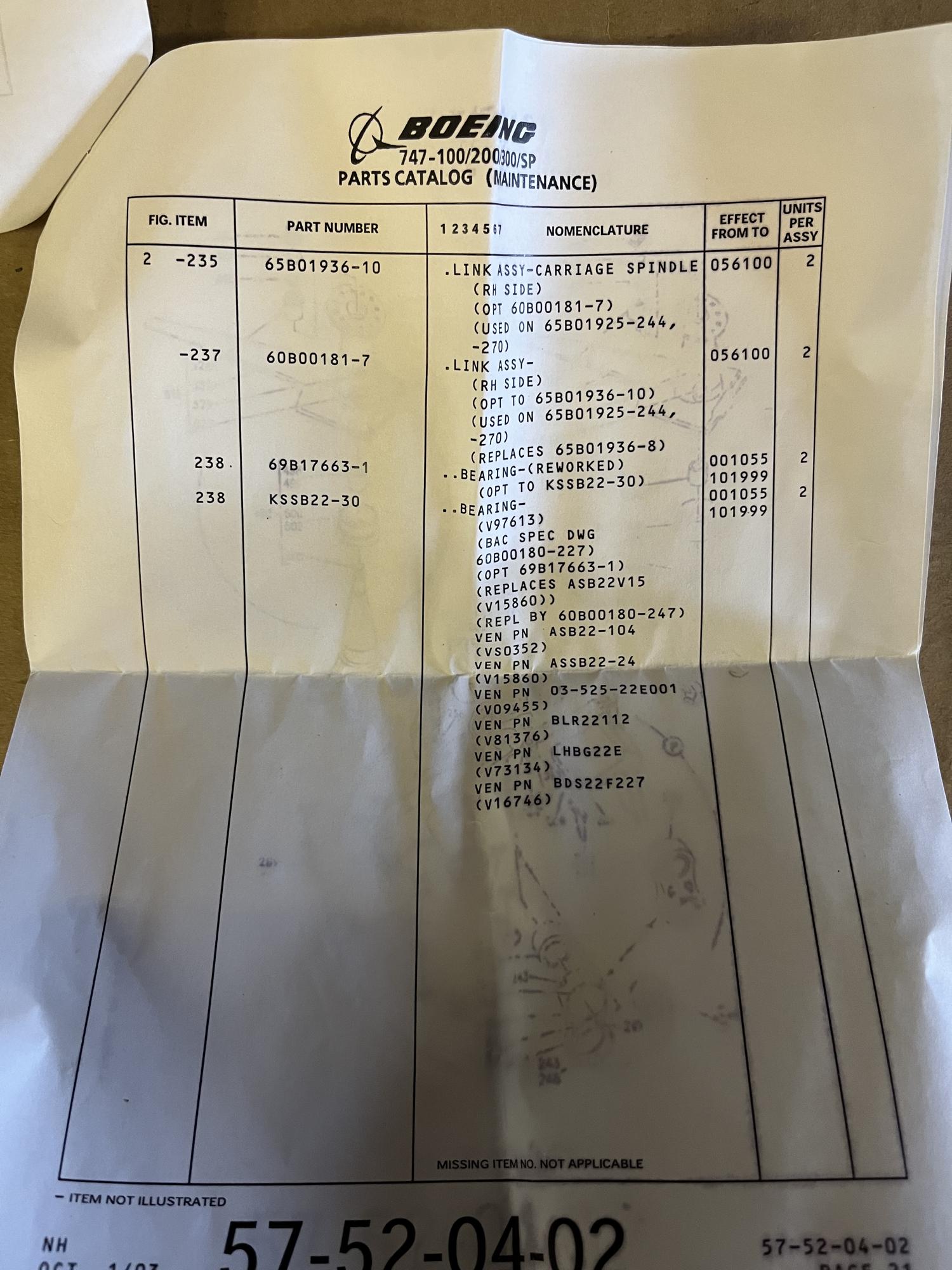 266 | 65B01936-10 | NSN27892 | LINK AY | 1 | AR | B747 | A22594 | SID13993 | View |