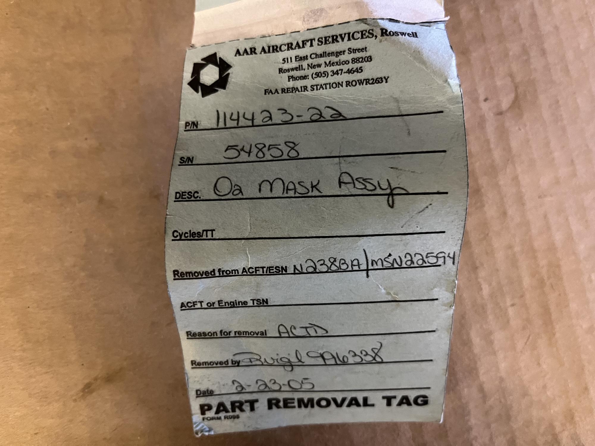 266 | 114423-22 | 54953 | O2 MASK ASSY | 1 | AR | B747 | A22594 | SID00401 | View |