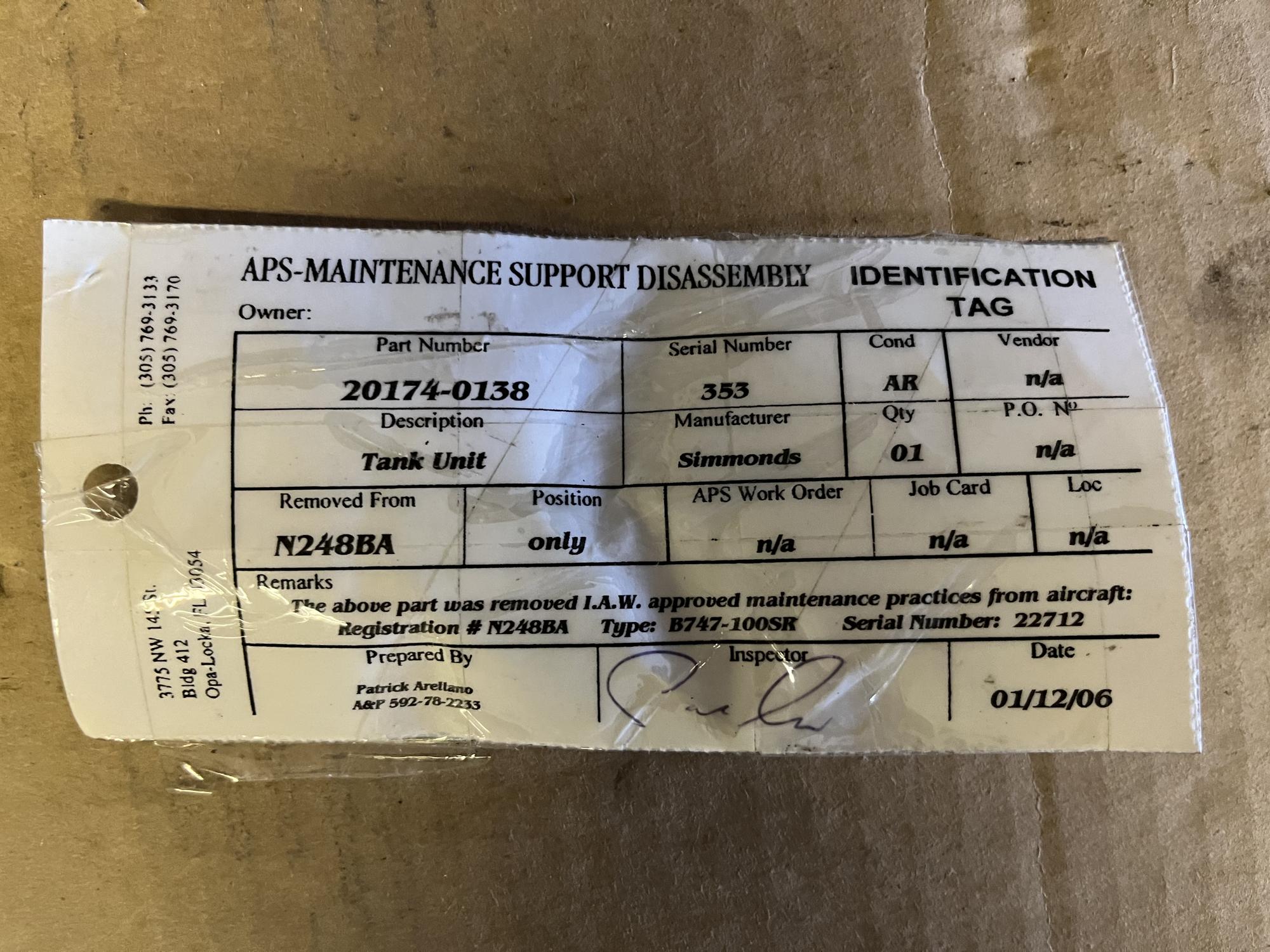 266 | 20174-0138 | 353 | TANK UNIT | 1 | AR | B747 | A22712 | SID01672 | View |