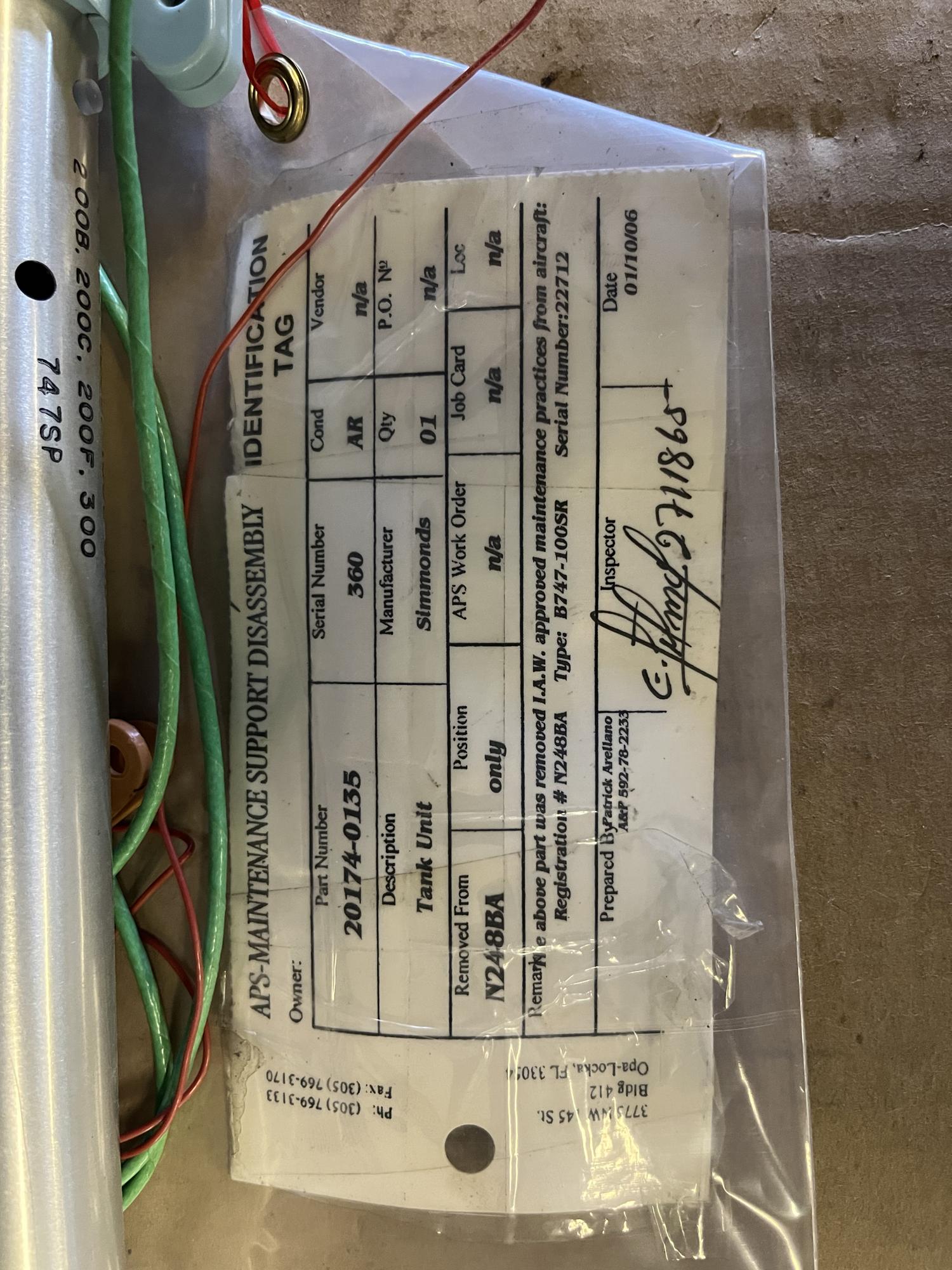 266 | 20174-0135 | 360 | TANK UNIT | 1 | AR | B747 | A22712 | SID01669 | View |