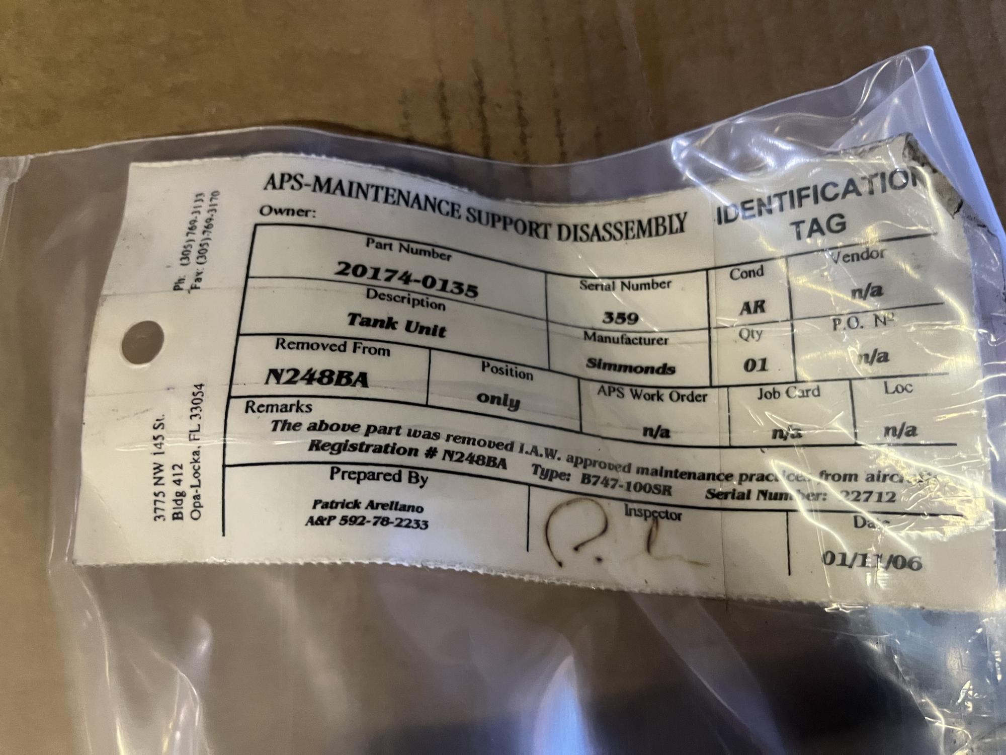 266 | 20174-0135 | 359 | TANK UNIT | 1 | AR | B747 | A22712 | SID01668 | View |