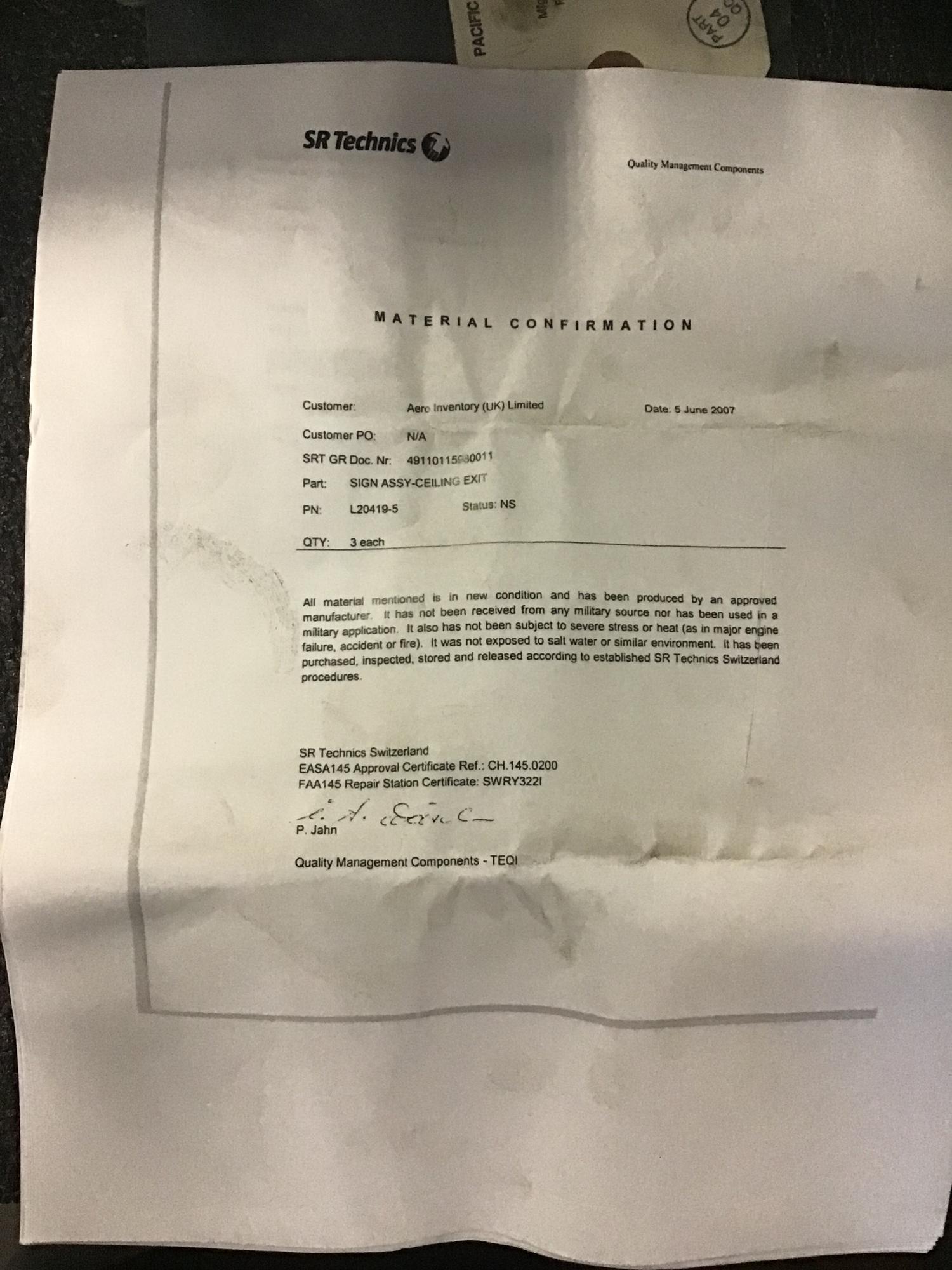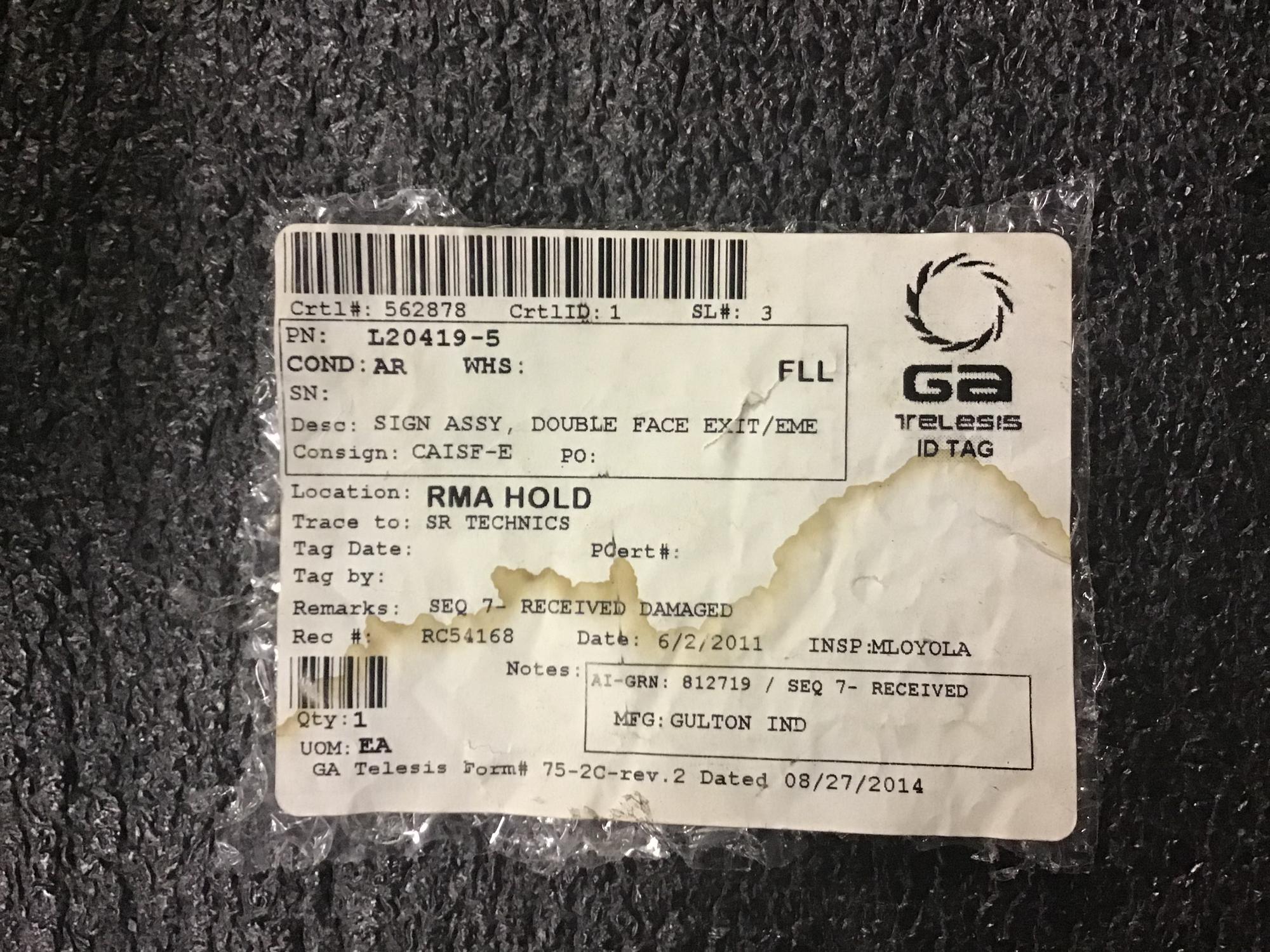 271 | L20419-5 | SIGN ASSY, DOUBLE FACE EXIT/EMERGENCY LGHT, V17744 | 1 | AR | DC10 | CAISF-E | SID19533 | View |