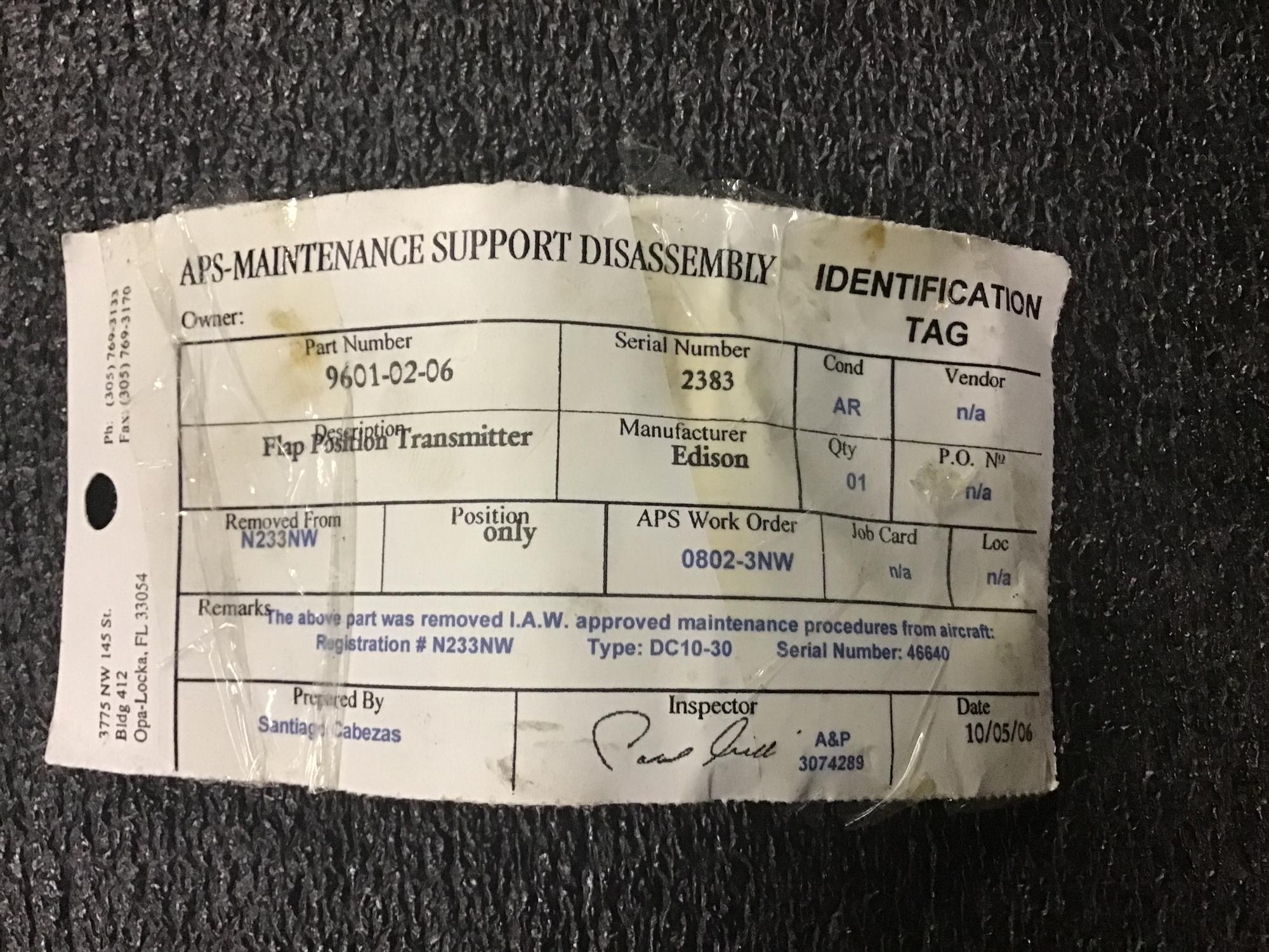 271 | 9601-02-06 | 9719 | FLAP POSITION TRANSMITTER | 1 | AR | DC10 | A48292 | SID17368 | View |