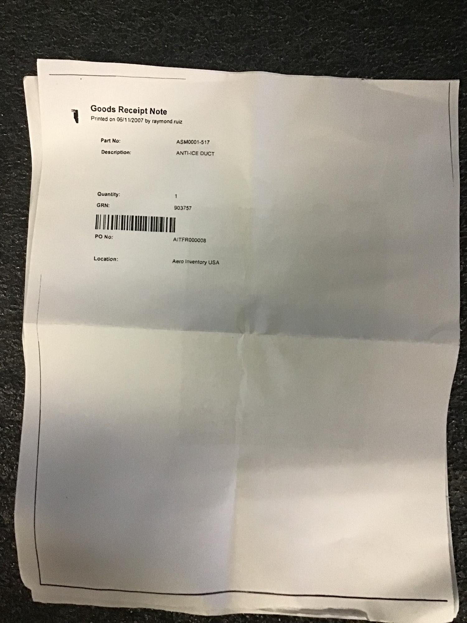 271 | ASM0001-517 | DUCT, ANTI-ICE | 1 | AR | DC10 | SOURCESPEC | SID18341 | No File - Check Pics | |